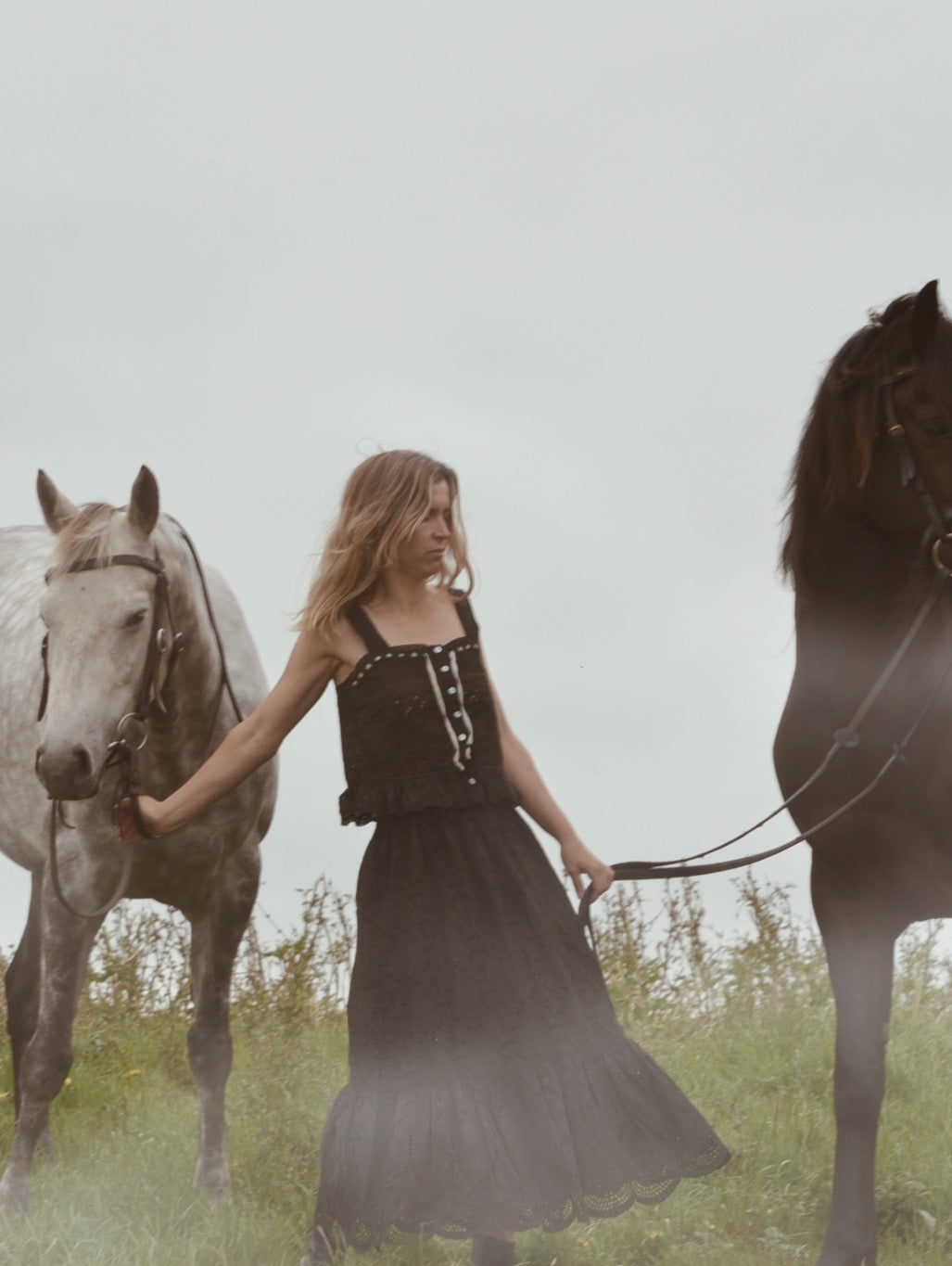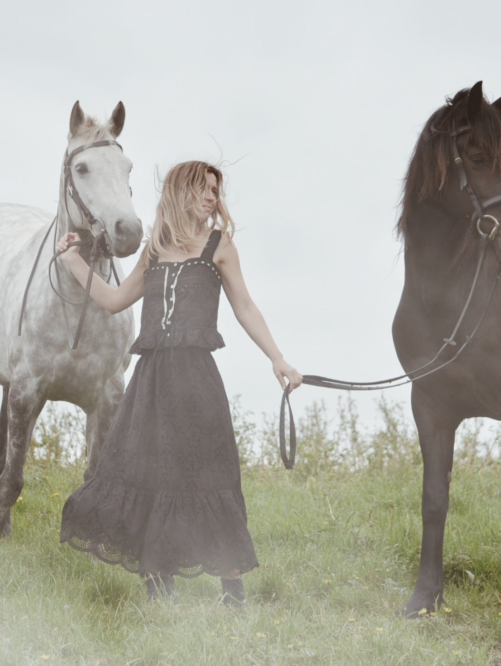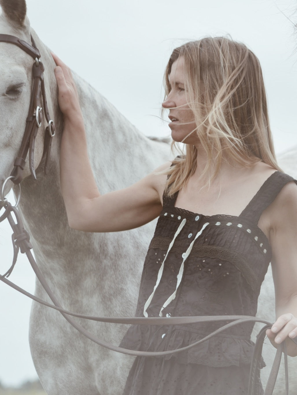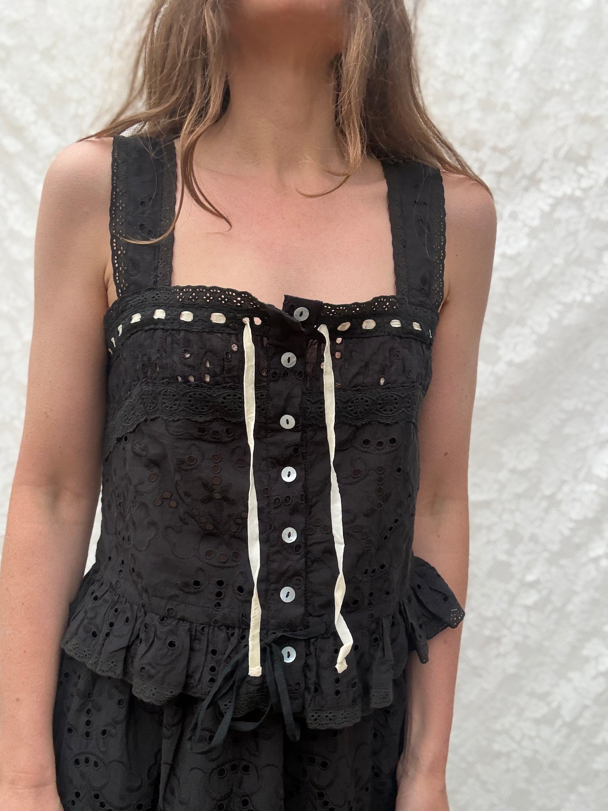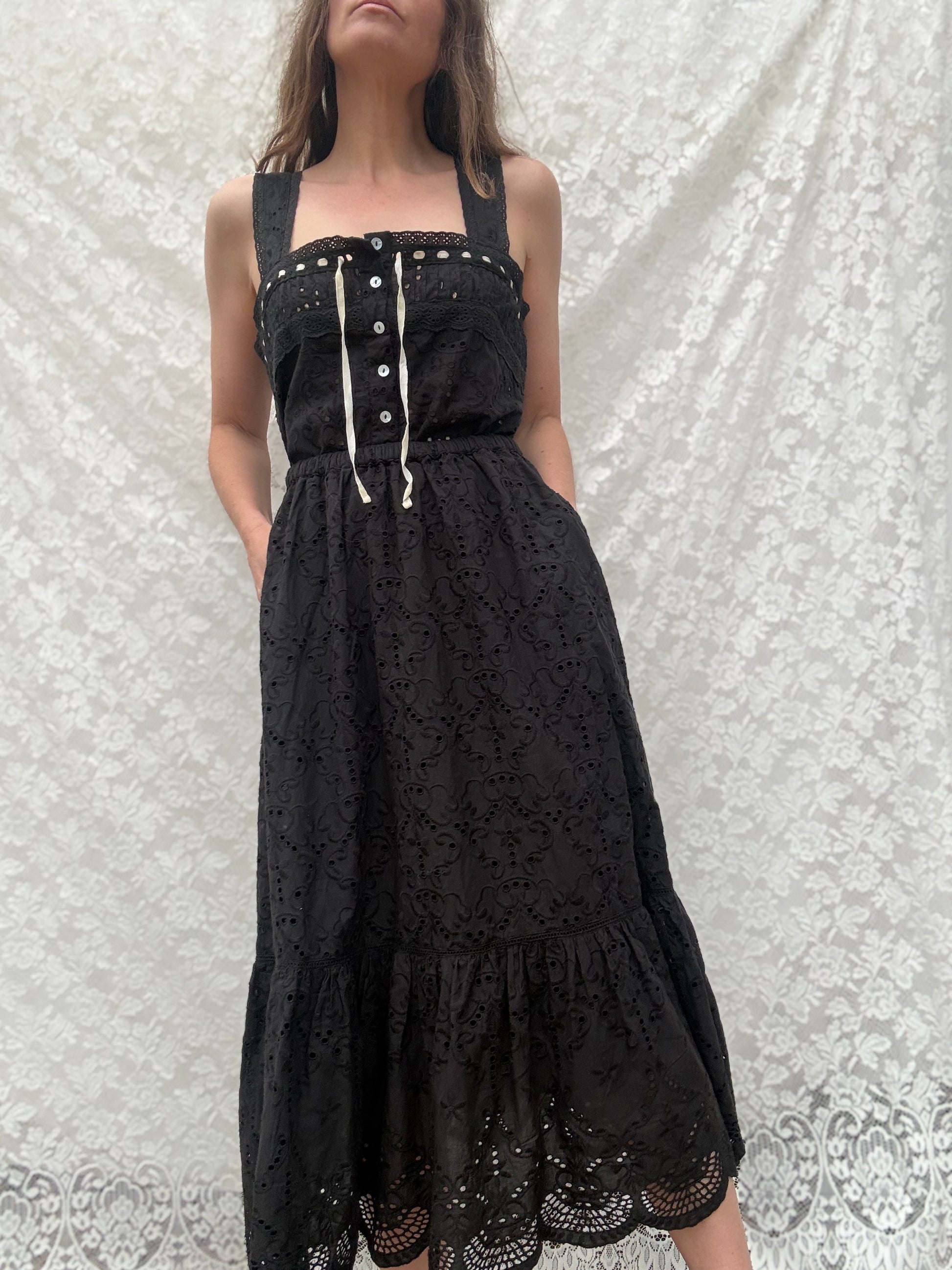 A dream to wear, a soft and feminine silhouette featuring intricate cutwork detailing, pintucks and a velvet ribbon trim.
