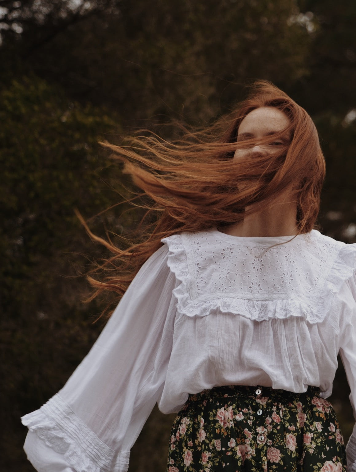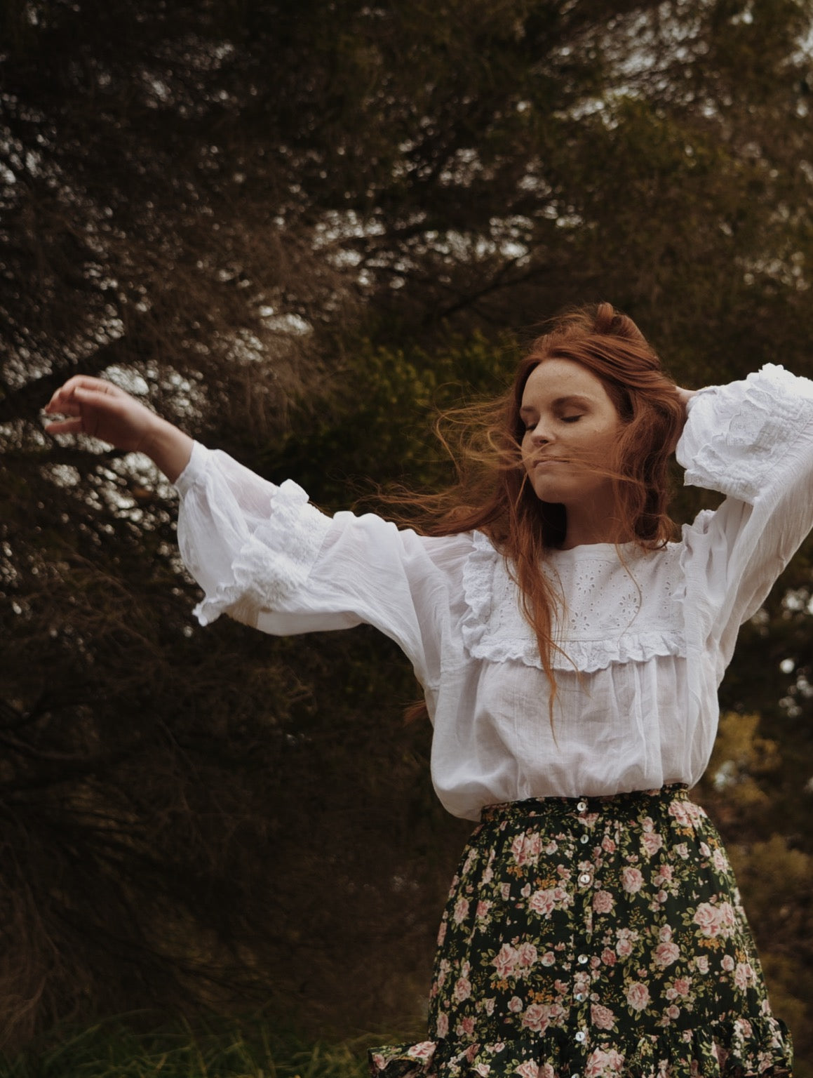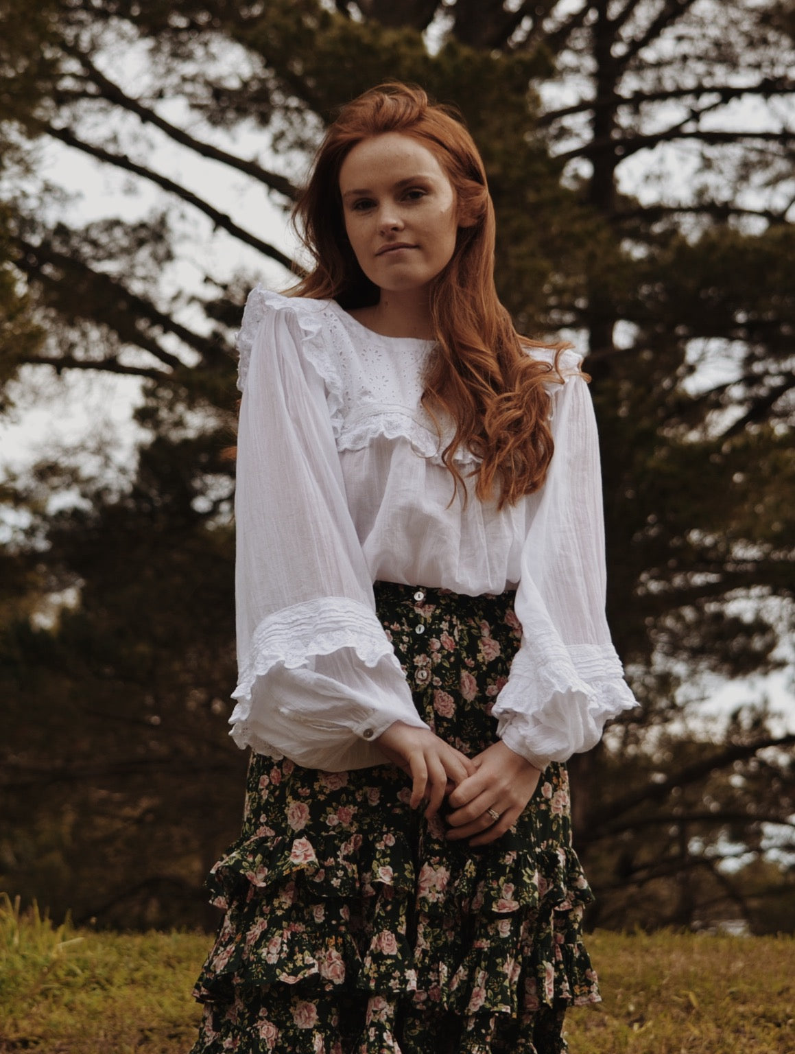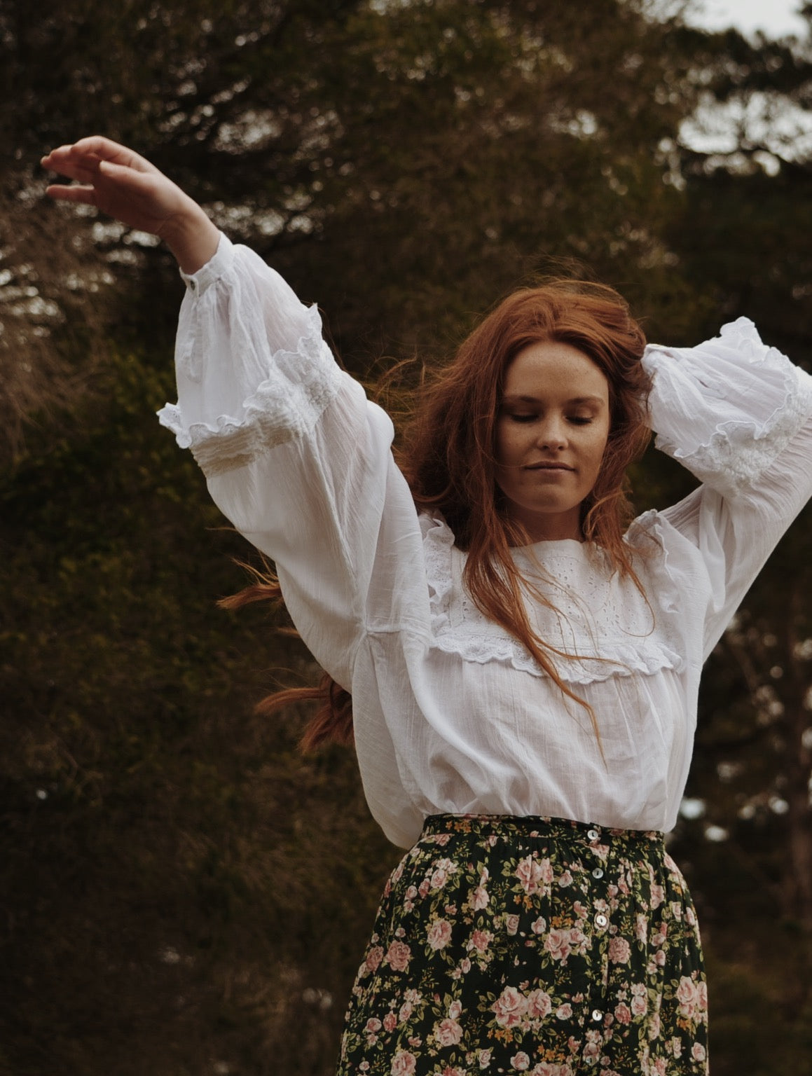 100% cotton. The dreamiest of blouses, made in super soft, lightweight cotton gauze. Beautifully flowy with billowing sleeves, wear loose or tucked in to add shape. Featuring a frilled, embroidered cotton yoke with detailing on the sleeve. This blouse is so soft and feminine, perfect for garden wandering and daydreaming.