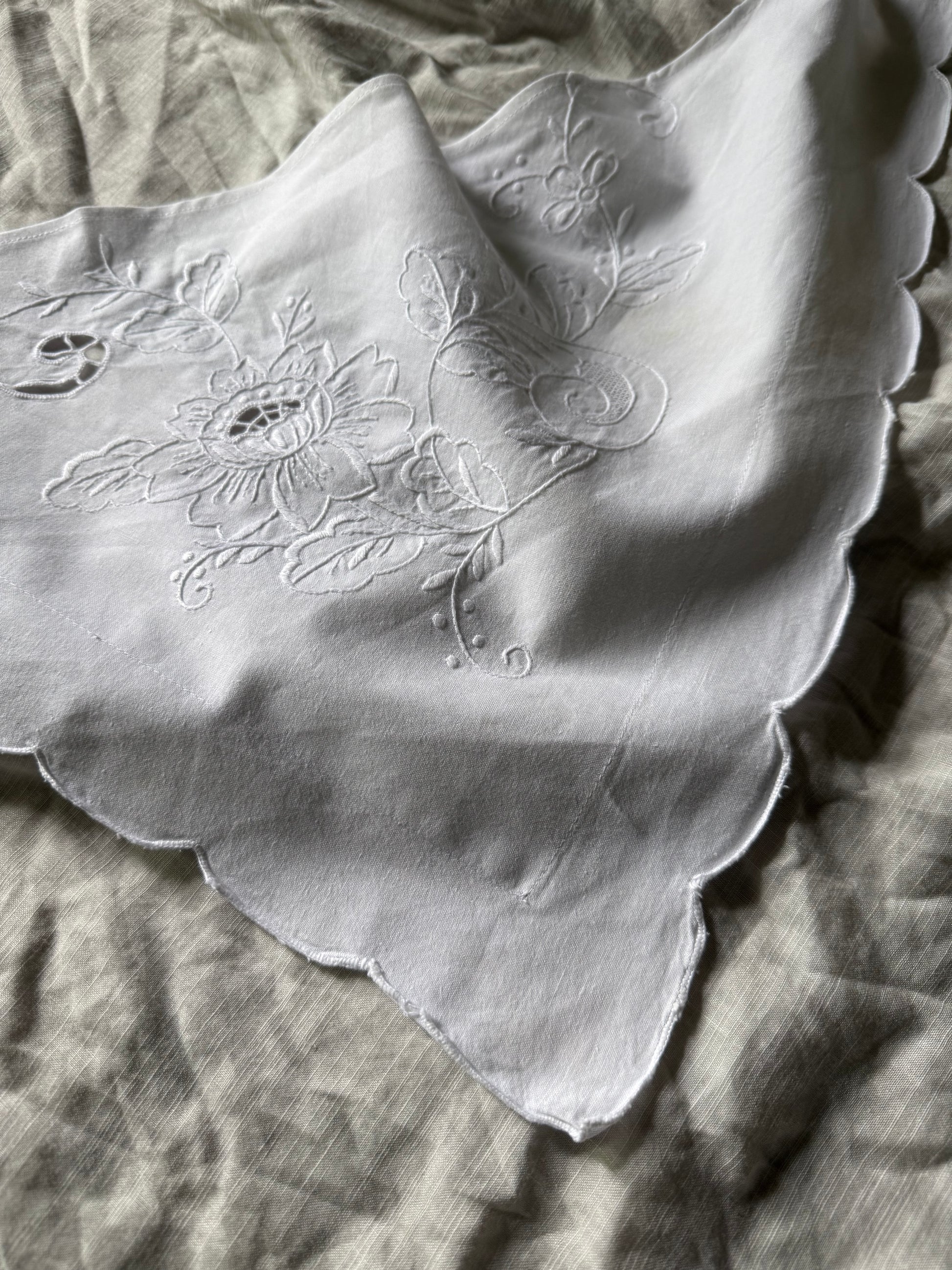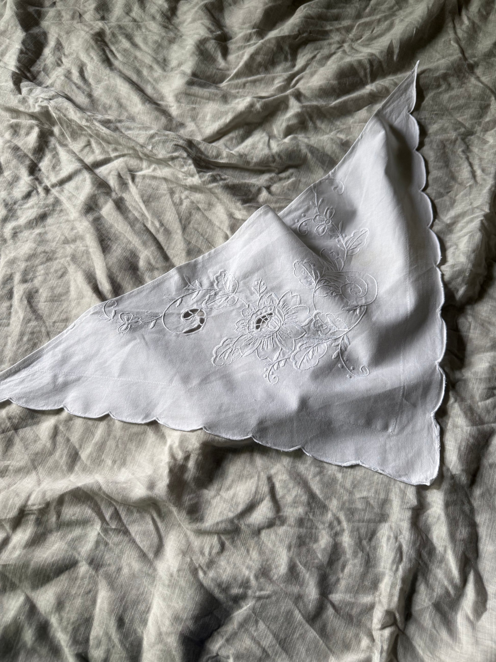 REWORKED - EMBROIDERED FLORAL COTTON HEAD SCARF WHITE