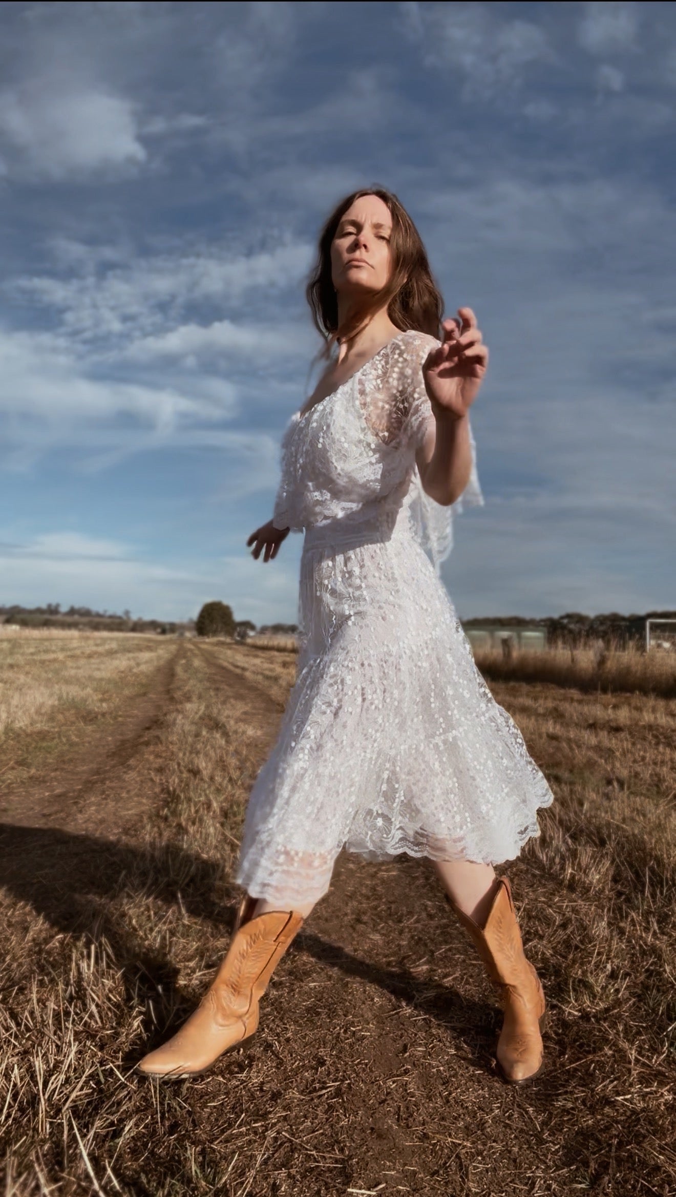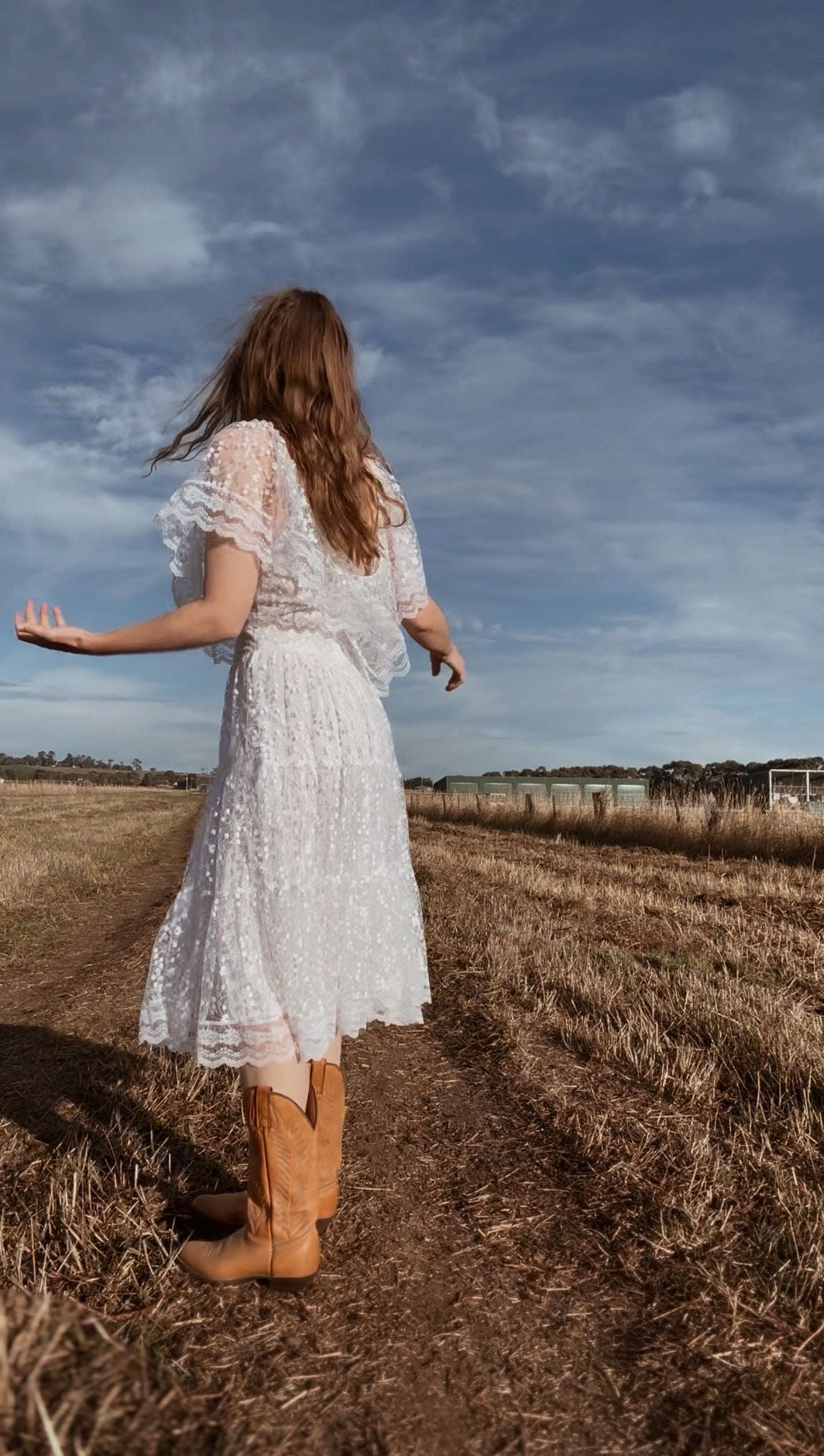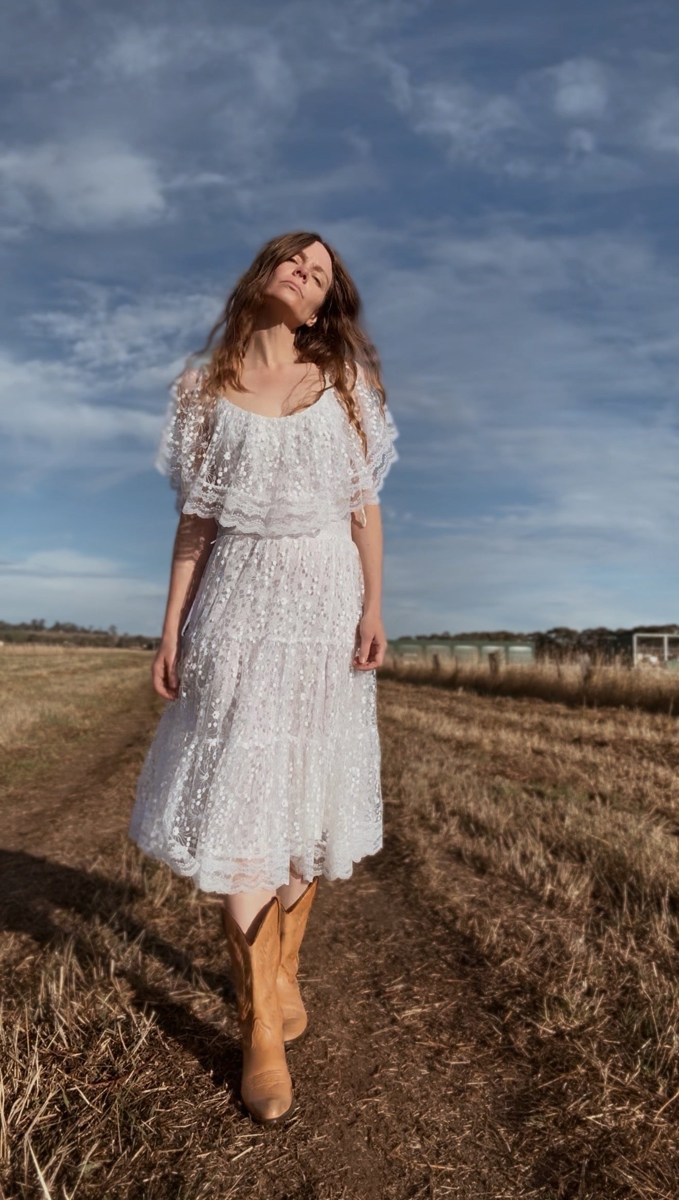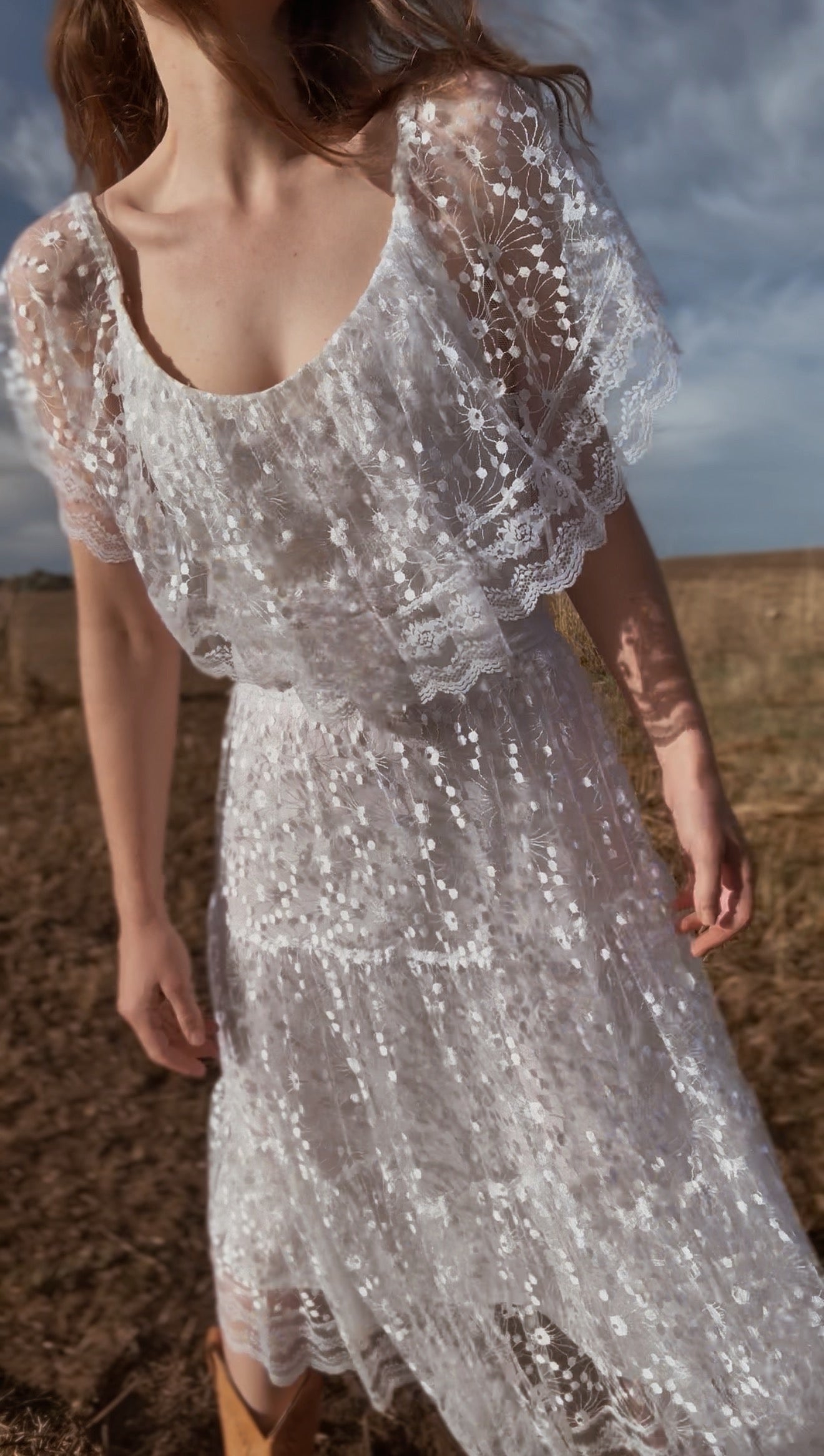 Perfect styled with boots (as shown) for a modern bohemian look, or layered for a more traditional romantic aesthetic.