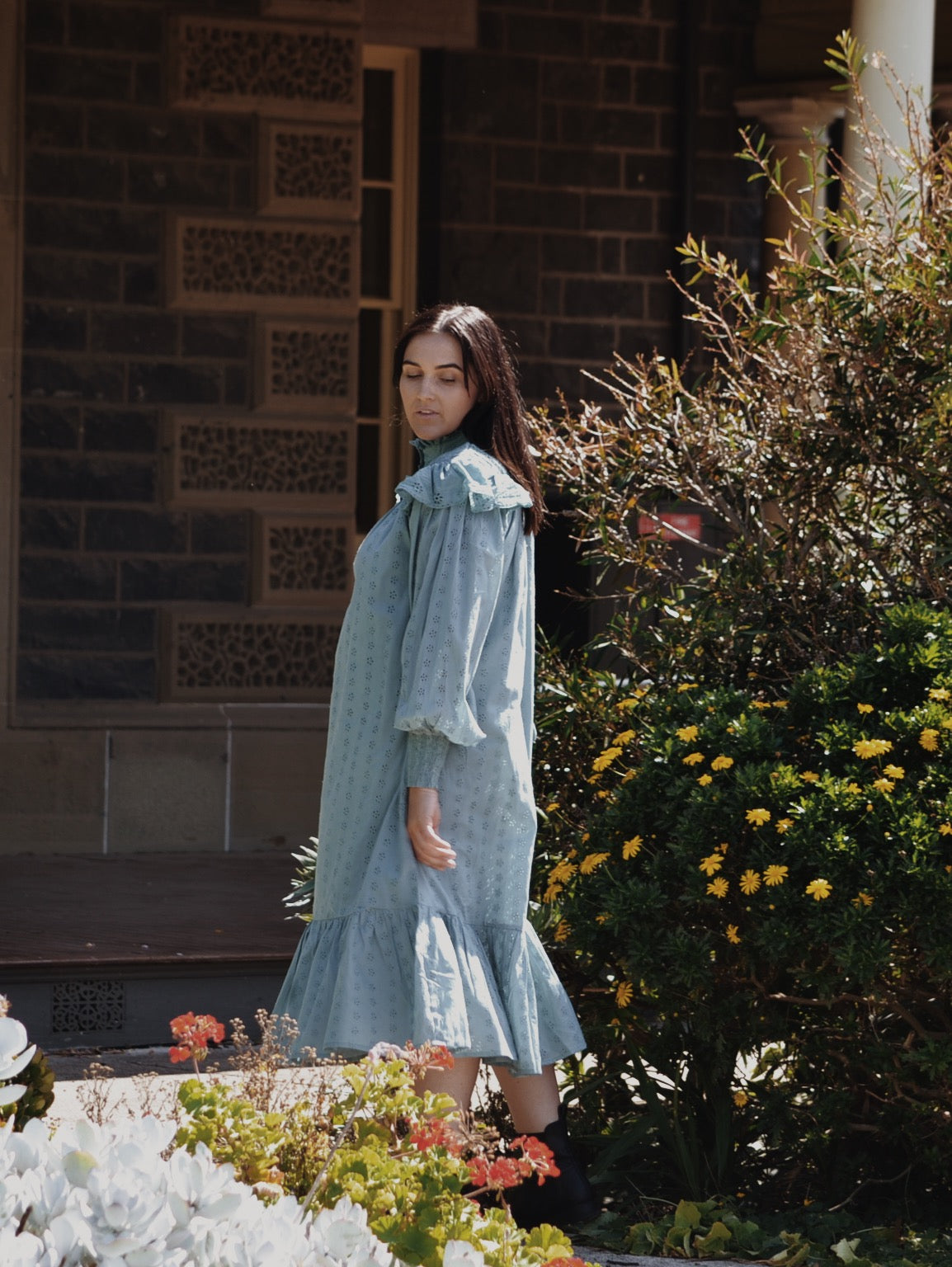 Modernised Edwardian, a beautifully floaty style that can be worn casually loose and free flowing, or you may also cinch it in at the waist with a self tie belt.