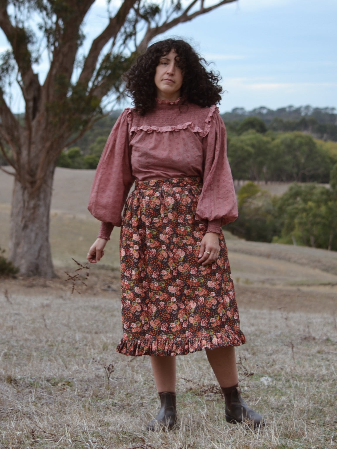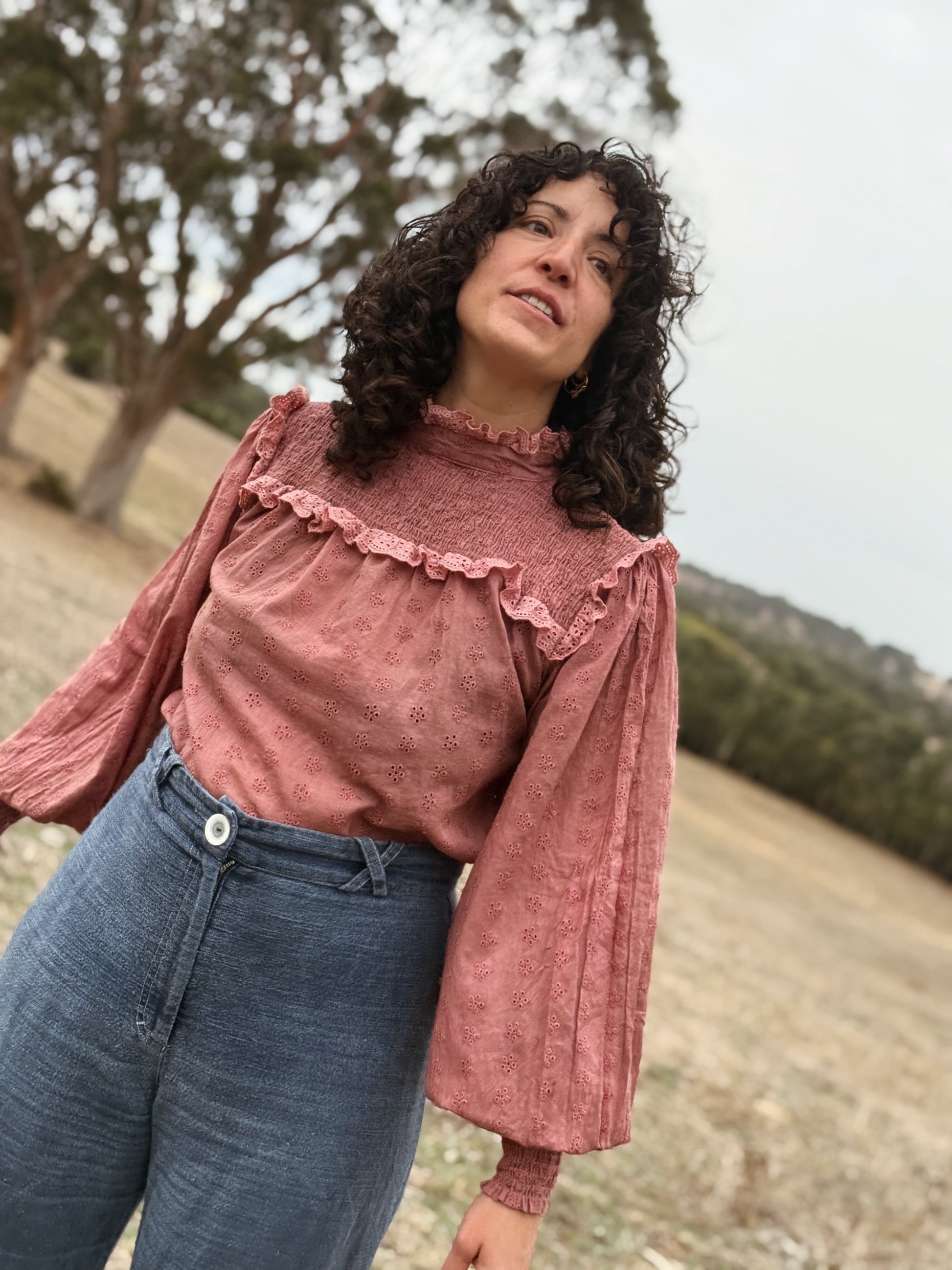 The shirred yoke can be worn open casually or as a high neck, making it also ideal for feeding. To get the ultimate wear out of your blouse, you can also flip it around to a closed high neck look too as seen in photos.