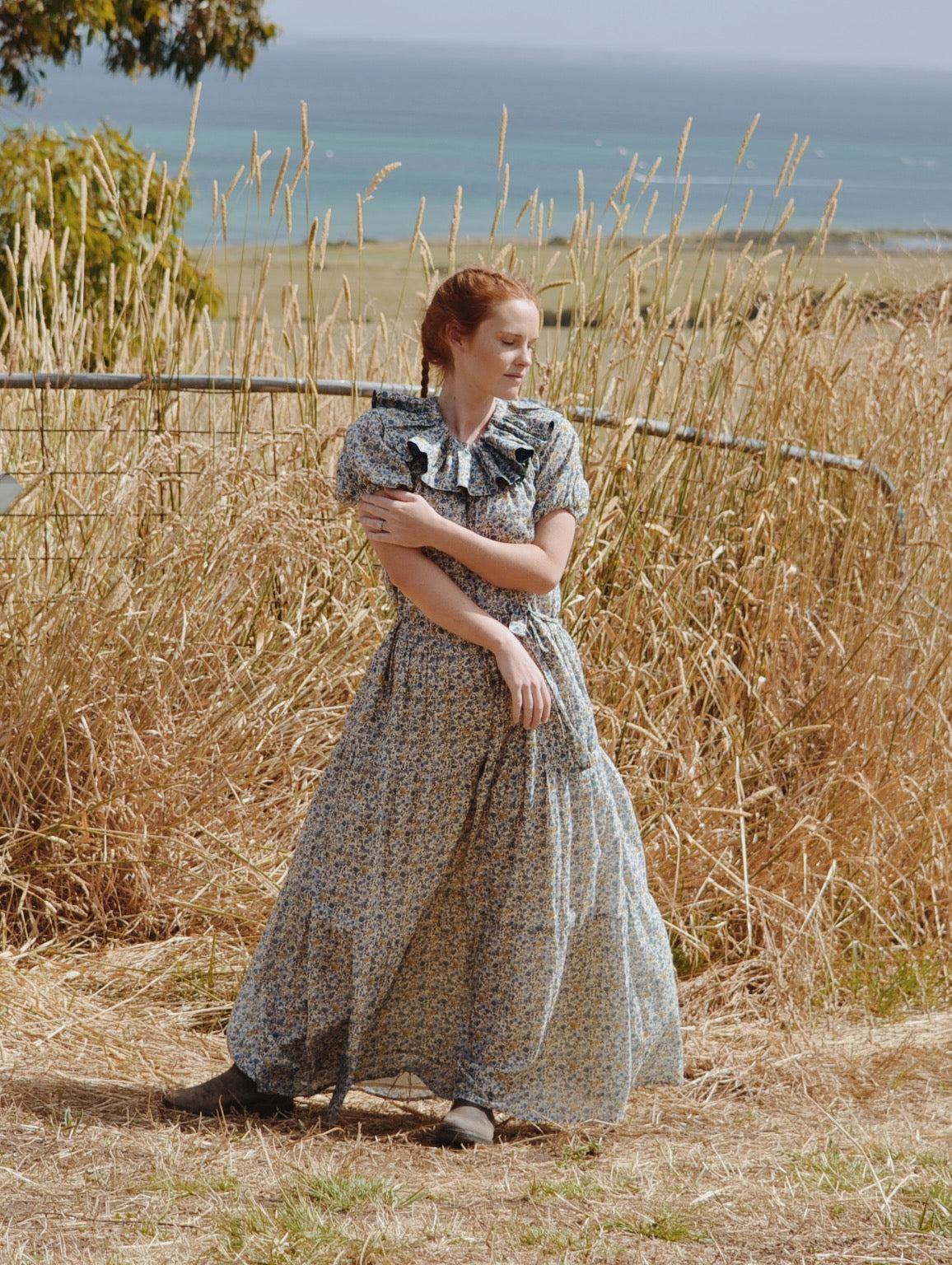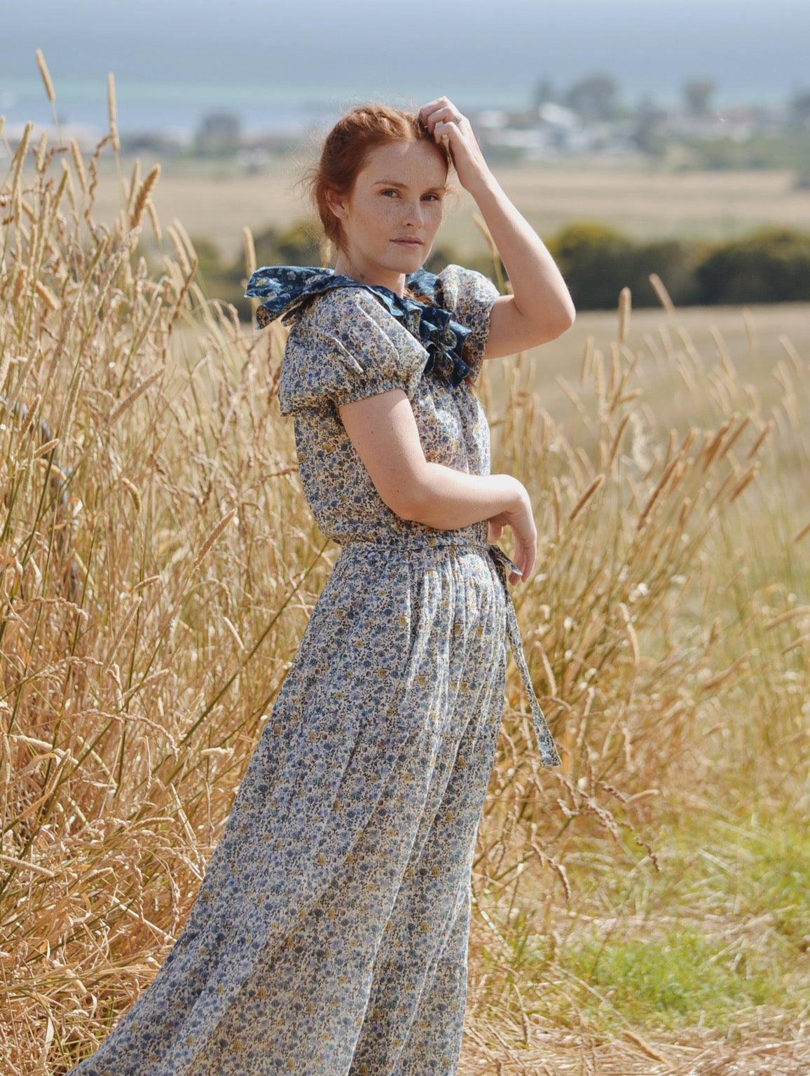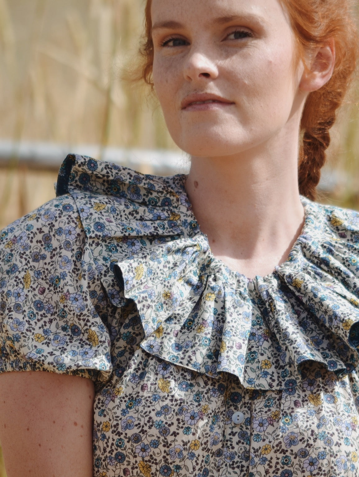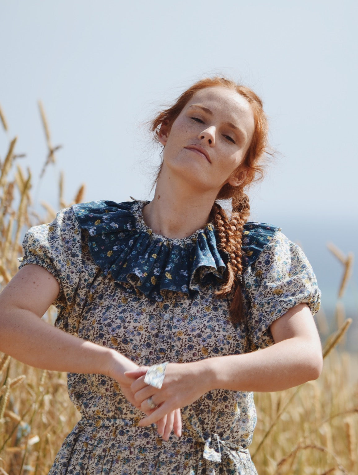 A take on the much loved Delphinium dress but with a removable Pierrot collar. Beautifully graceful and easy to wear, she is functional yet so dreamy.