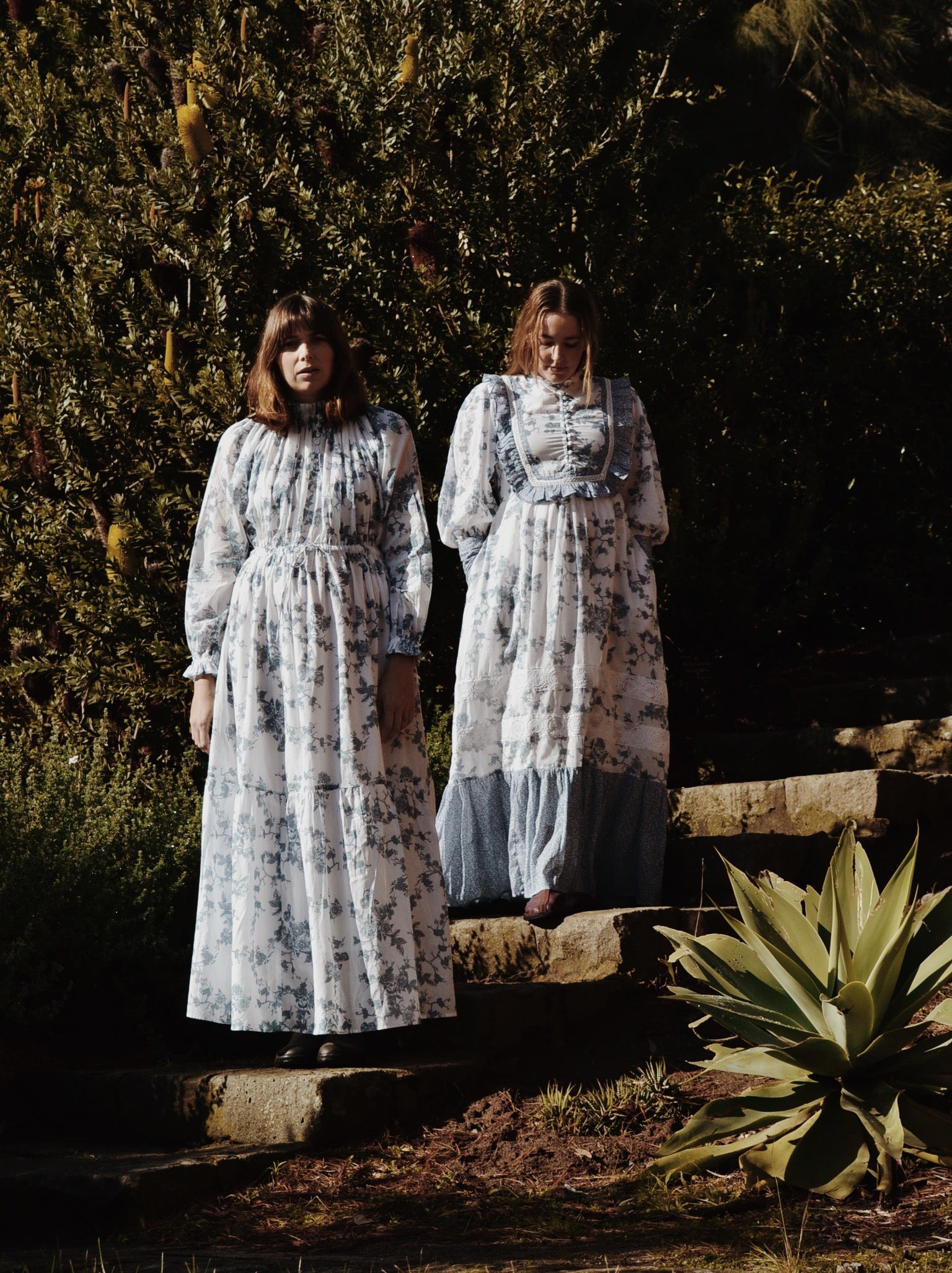 100% Recycled cotton. Beautifully feminine, a soft take on dresses of the Victorian era, with an elasticised, gathered high neckline which can be worn buttoned up, or for a more casual look, loosely undone (great if you are breastfeeding). The waist may be cinched further to create a dreamy silhouette through the flowing skirt. Dreamt up to wear with casual ease, picking flowers in the garden or for something more special like an afternoon soiree.