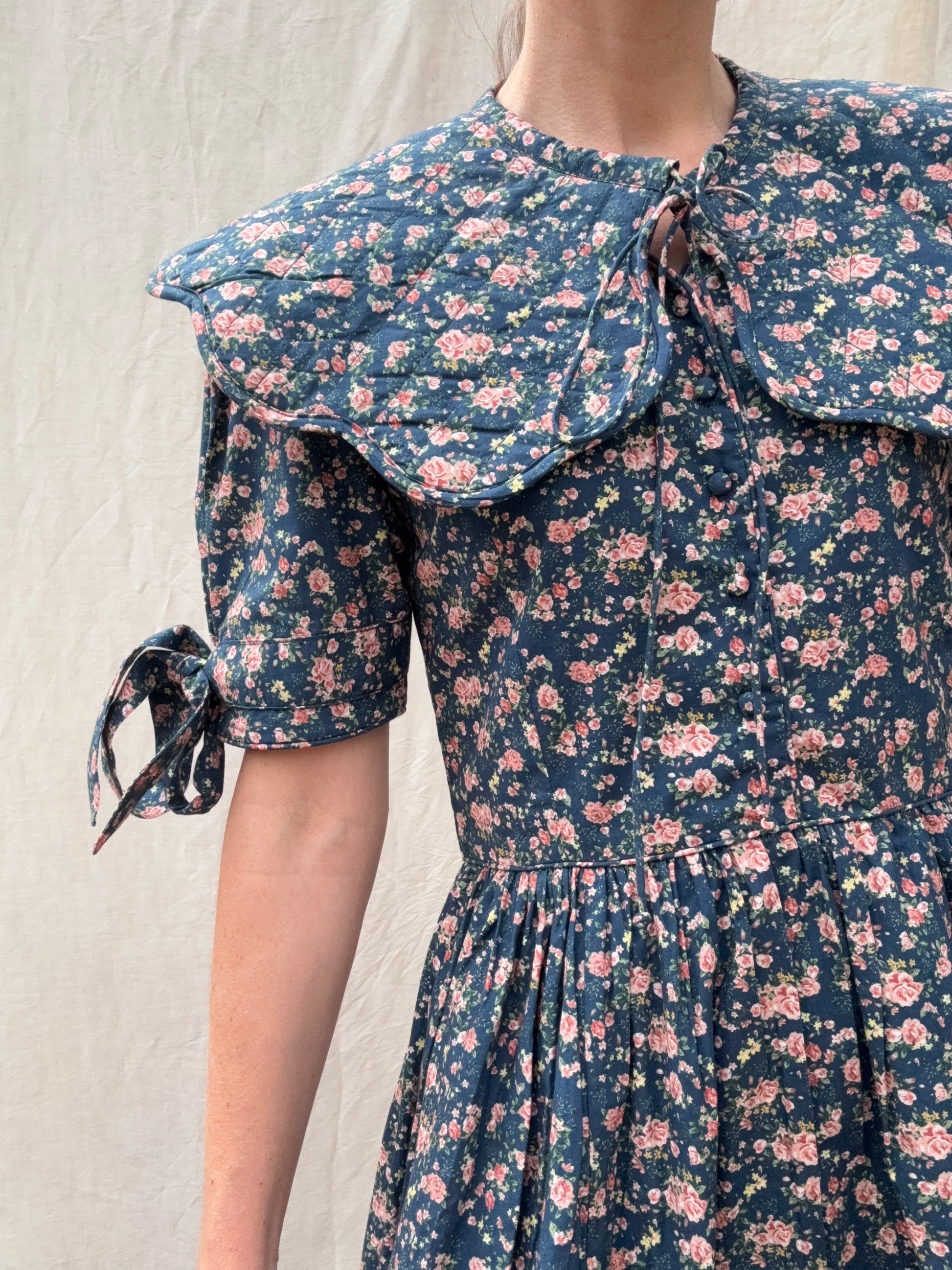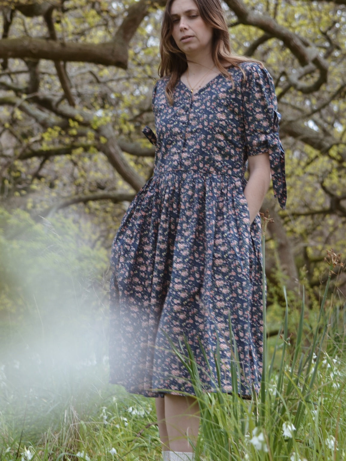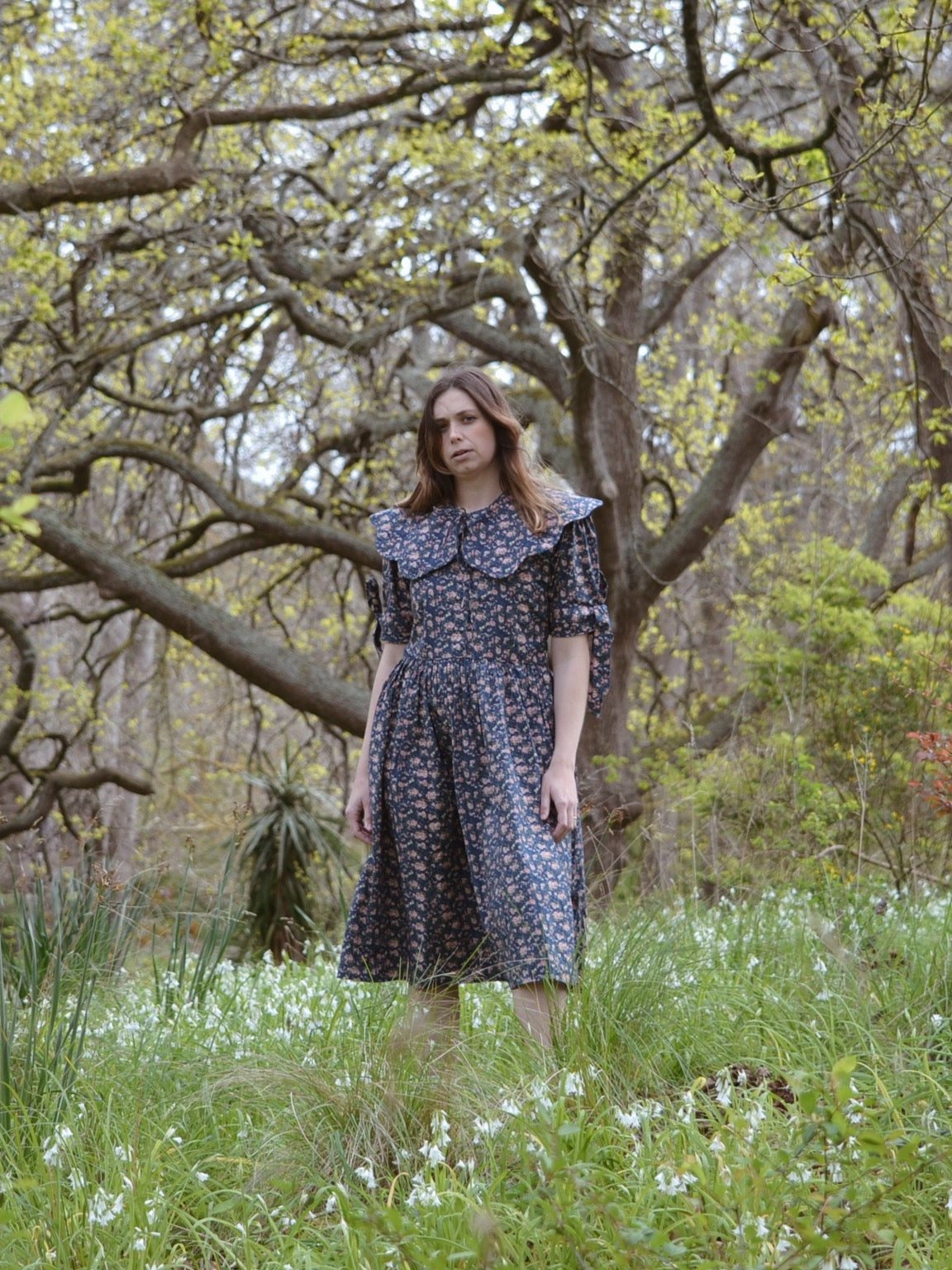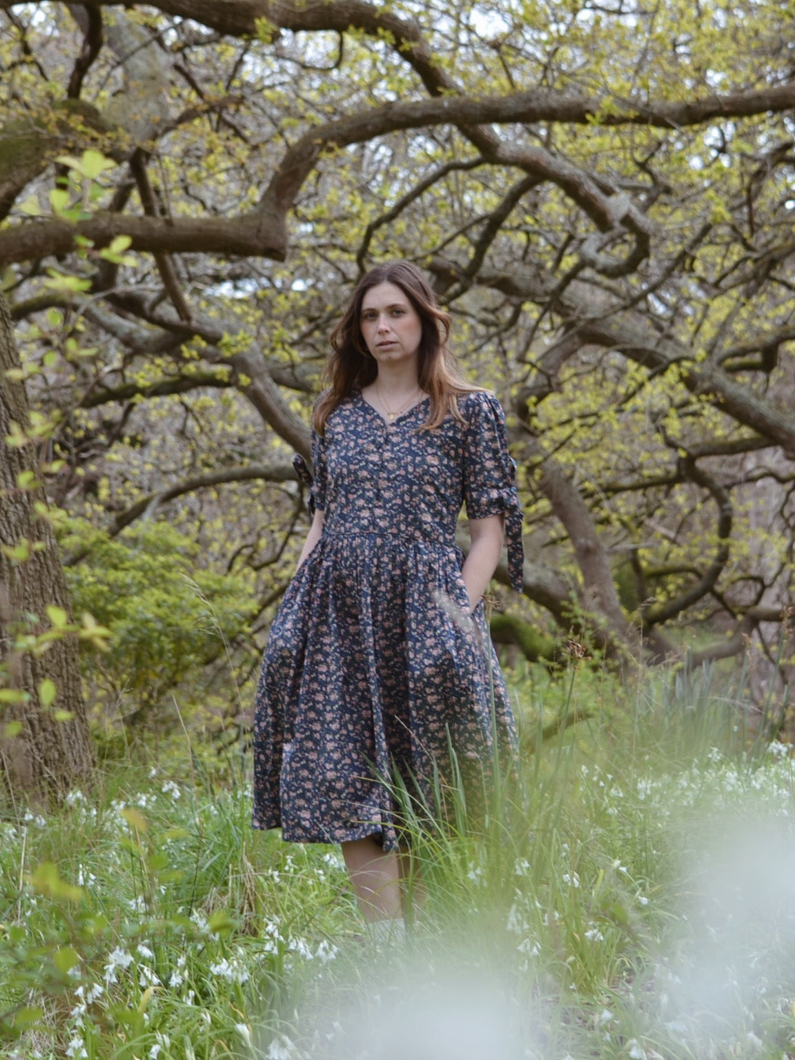 100% RECYCLED COTTON - SOPHIE DRESS NAVY FLORAL