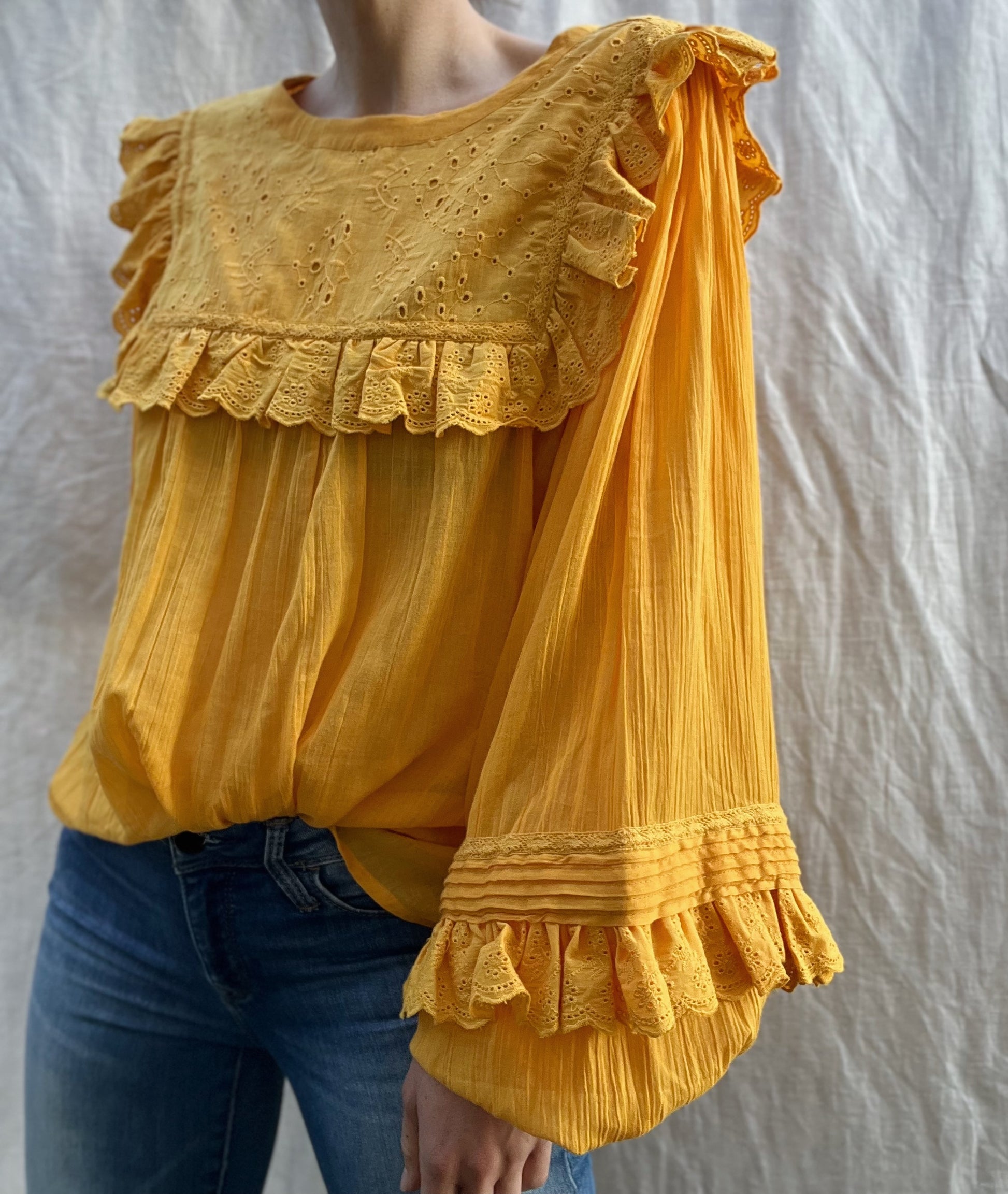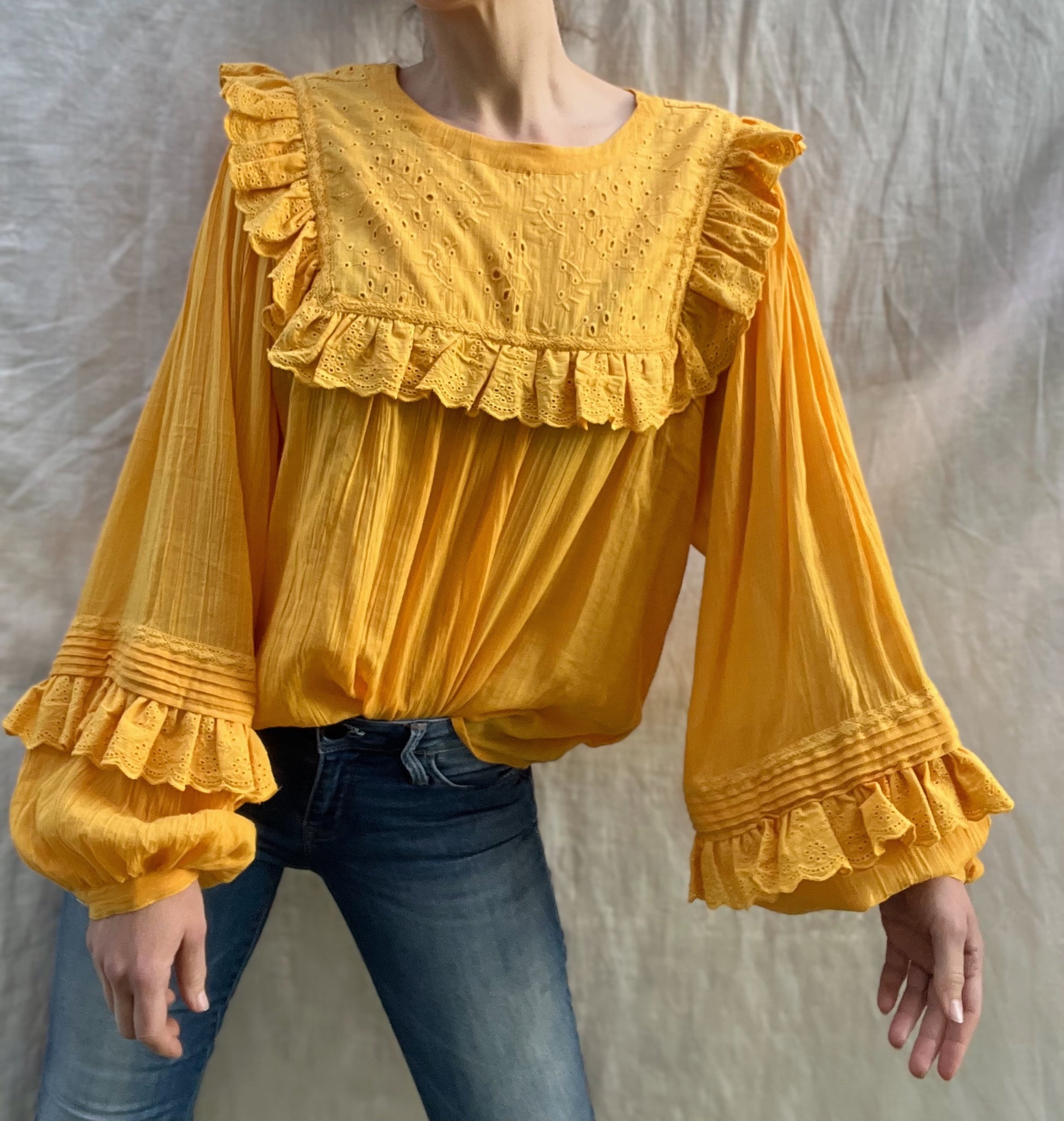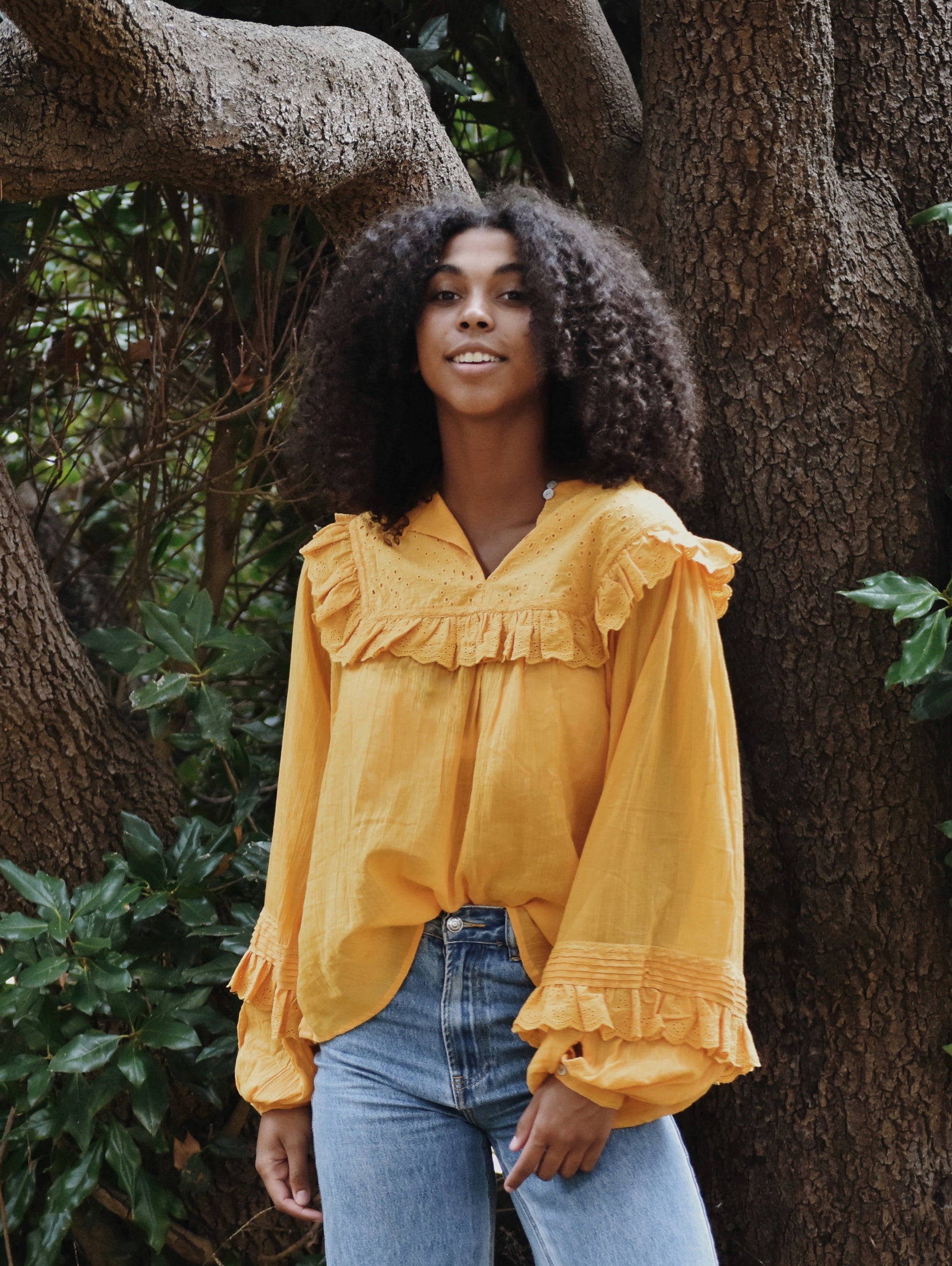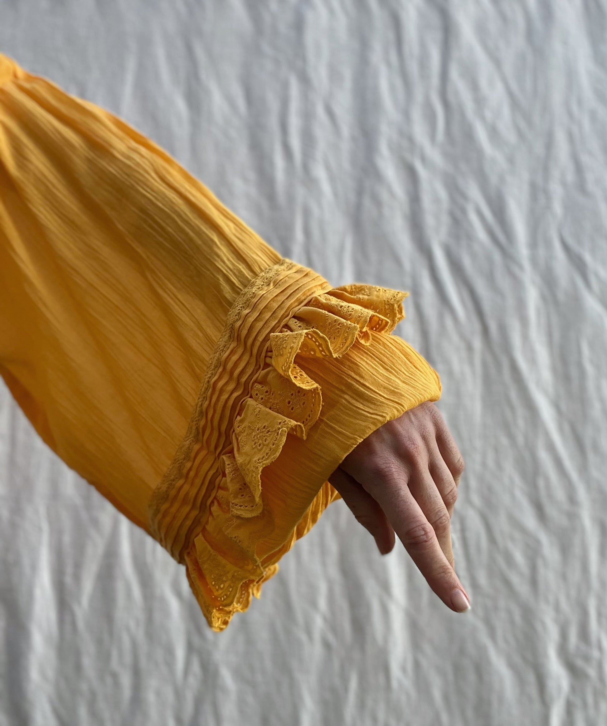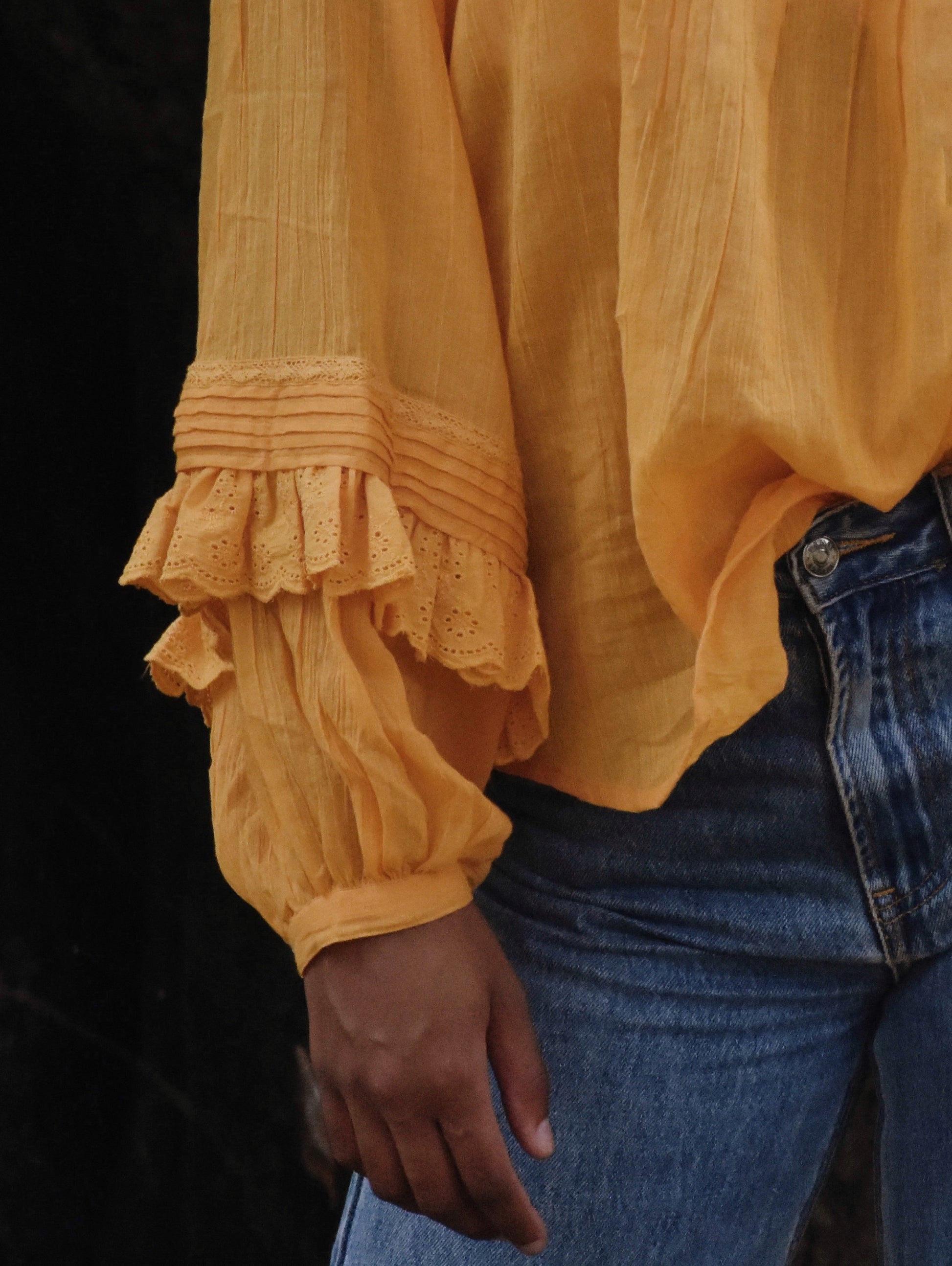 100% RECYCLED COTTON GAUZE - BEATRIX BLOUSE MUSTARD YELLOW