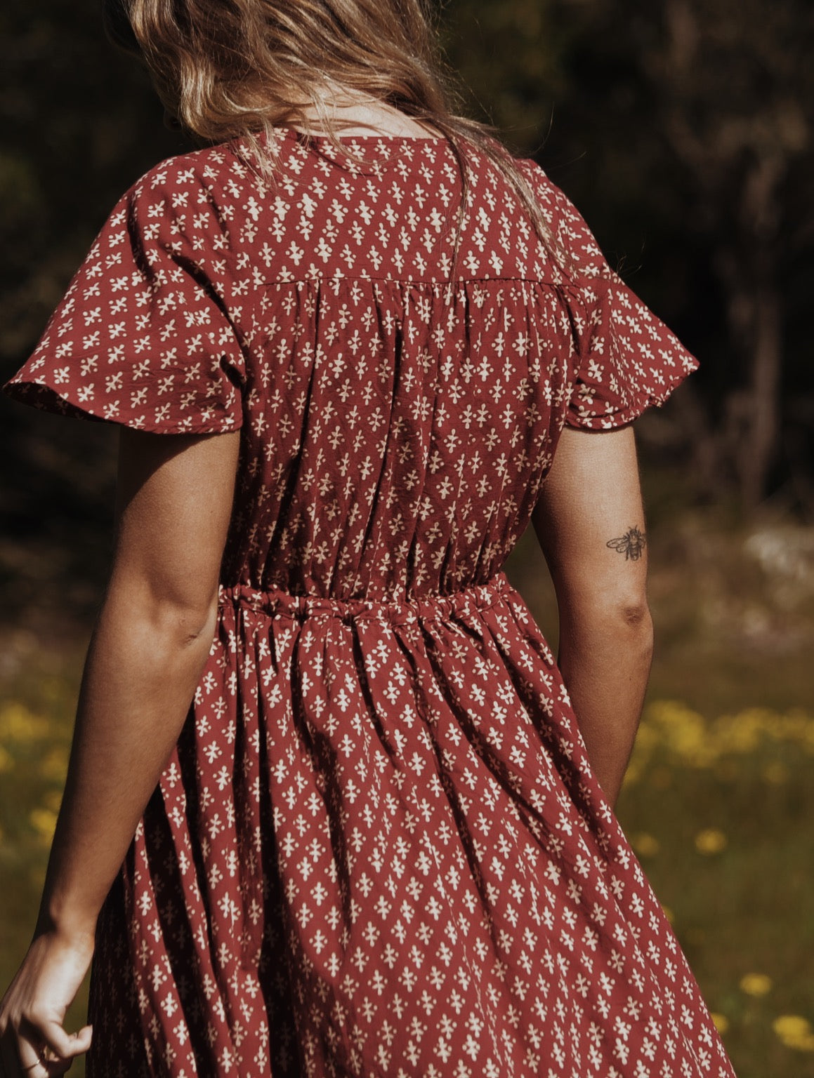 DULCIE DRESS CLAY HAND BLOCK PRINT