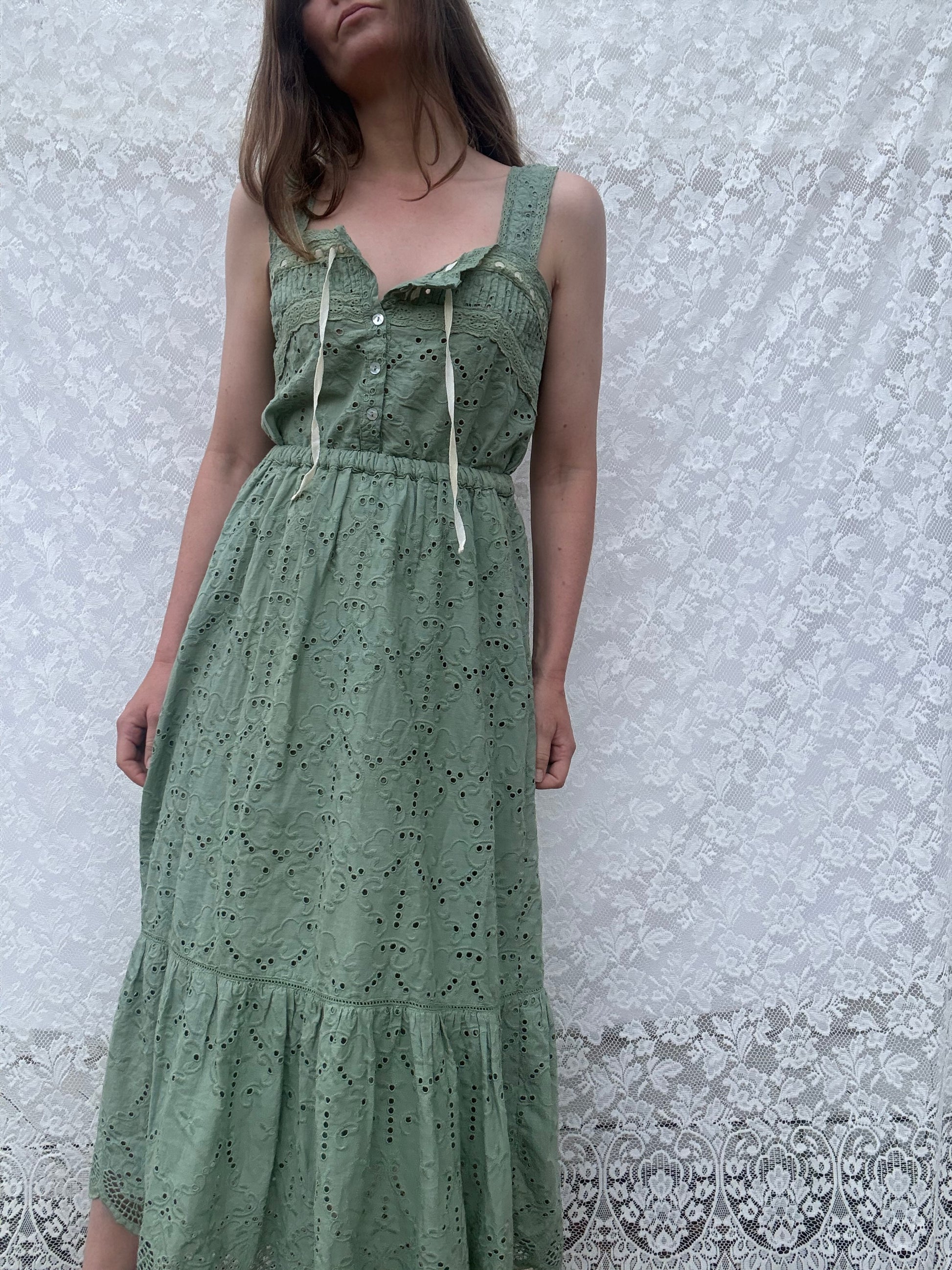 A dream to wear, a soft and feminine silhouette featuring intricate cutwork detailing.
