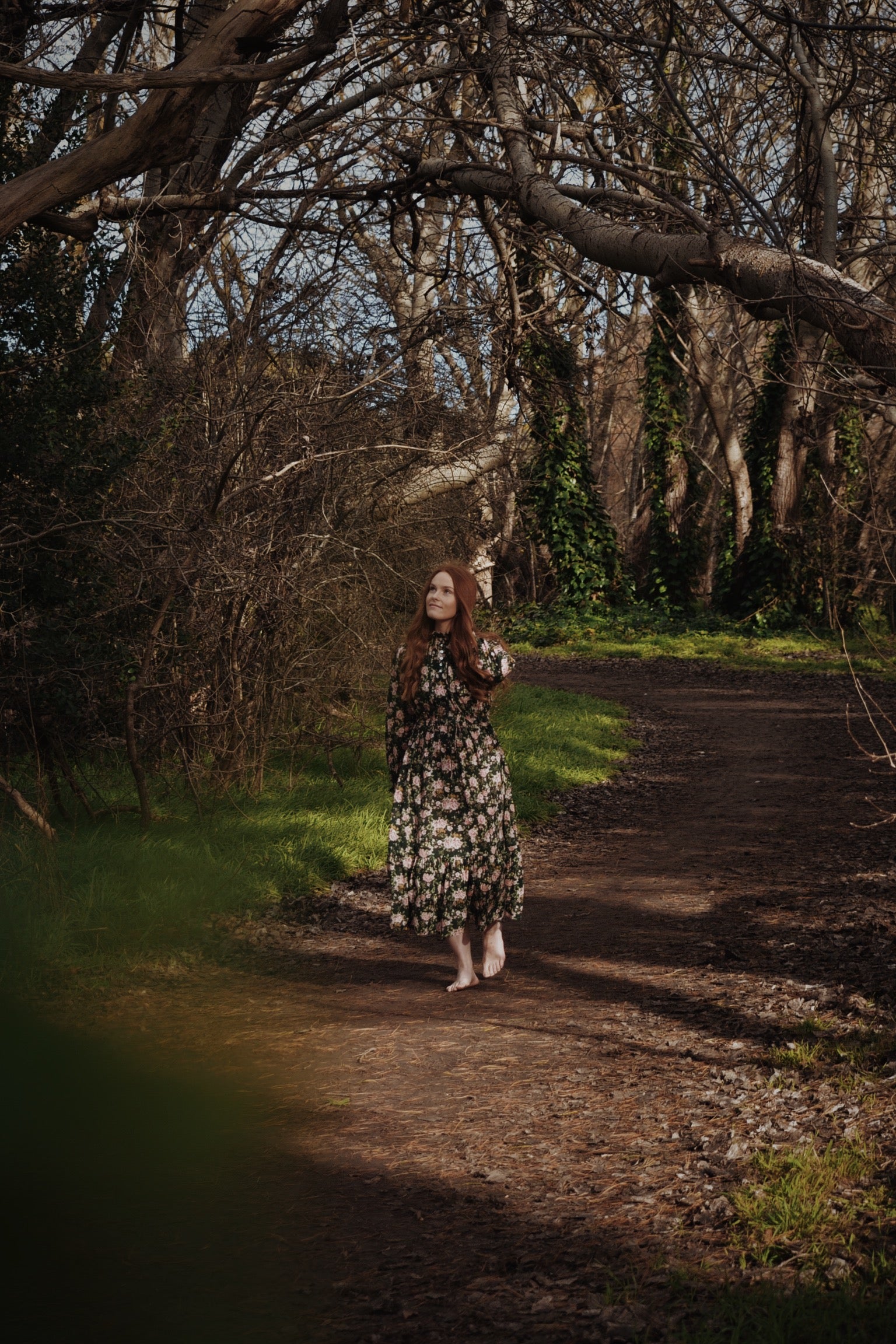 PRAIRIE ROSE FLORAL FOREST GREEN DRESS