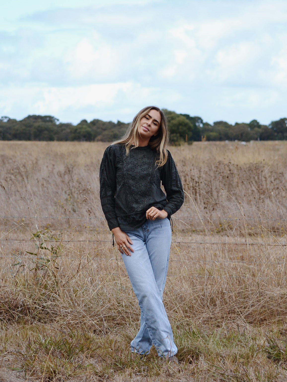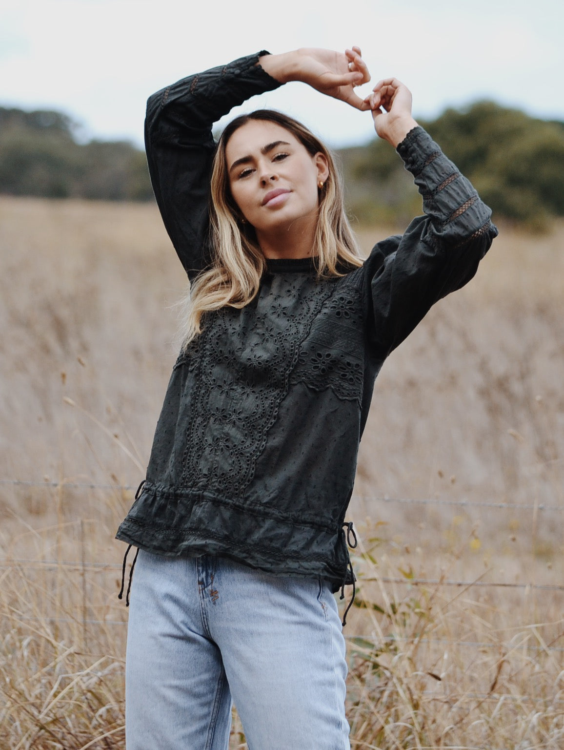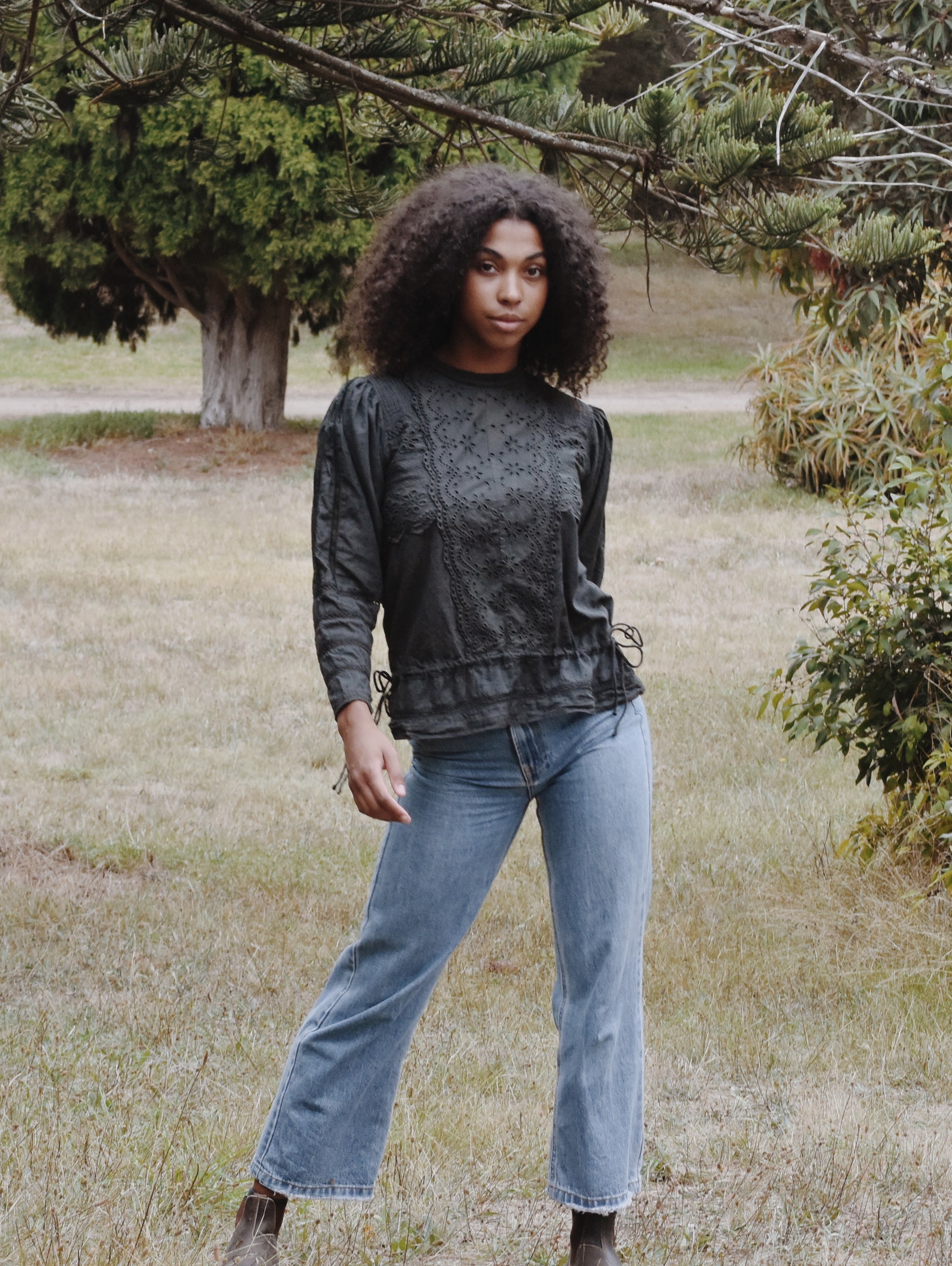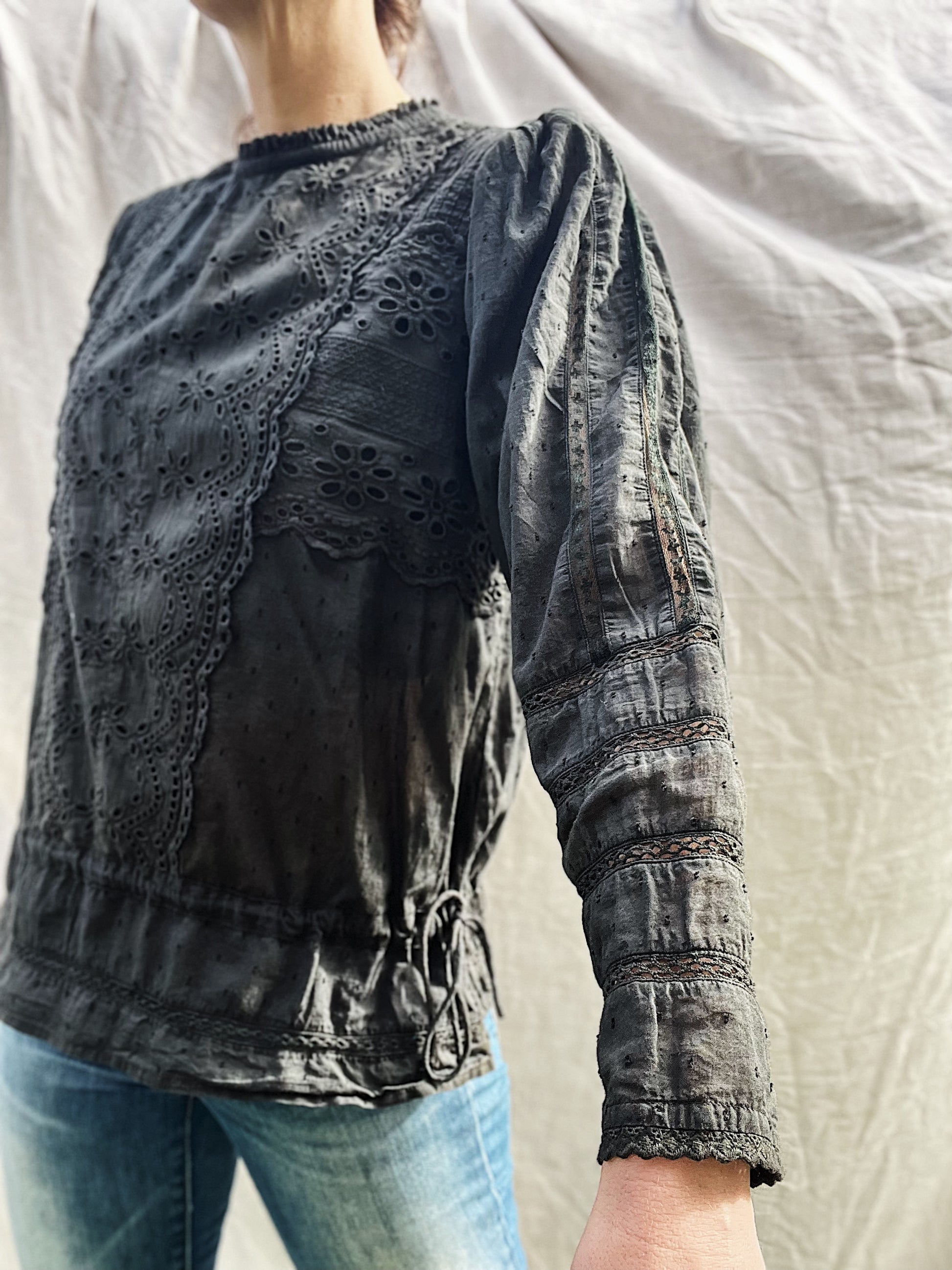 SAINSBURY COTTON LACE BLOUSE WASHED BLACK