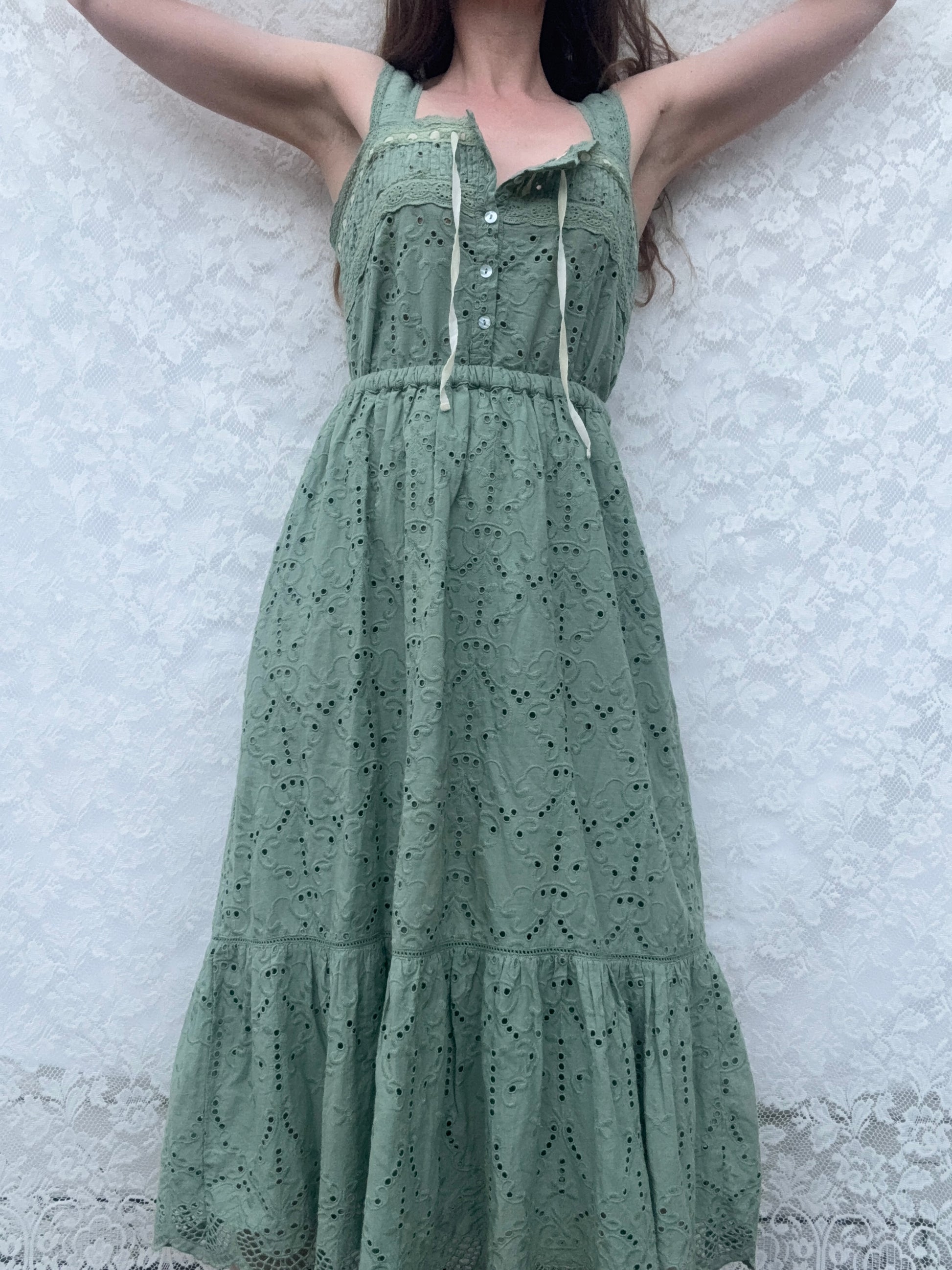 A dream to wear, a soft and feminine silhouette featuring intricate cutwork detailing, pintucks and a velvet ribbon trim.