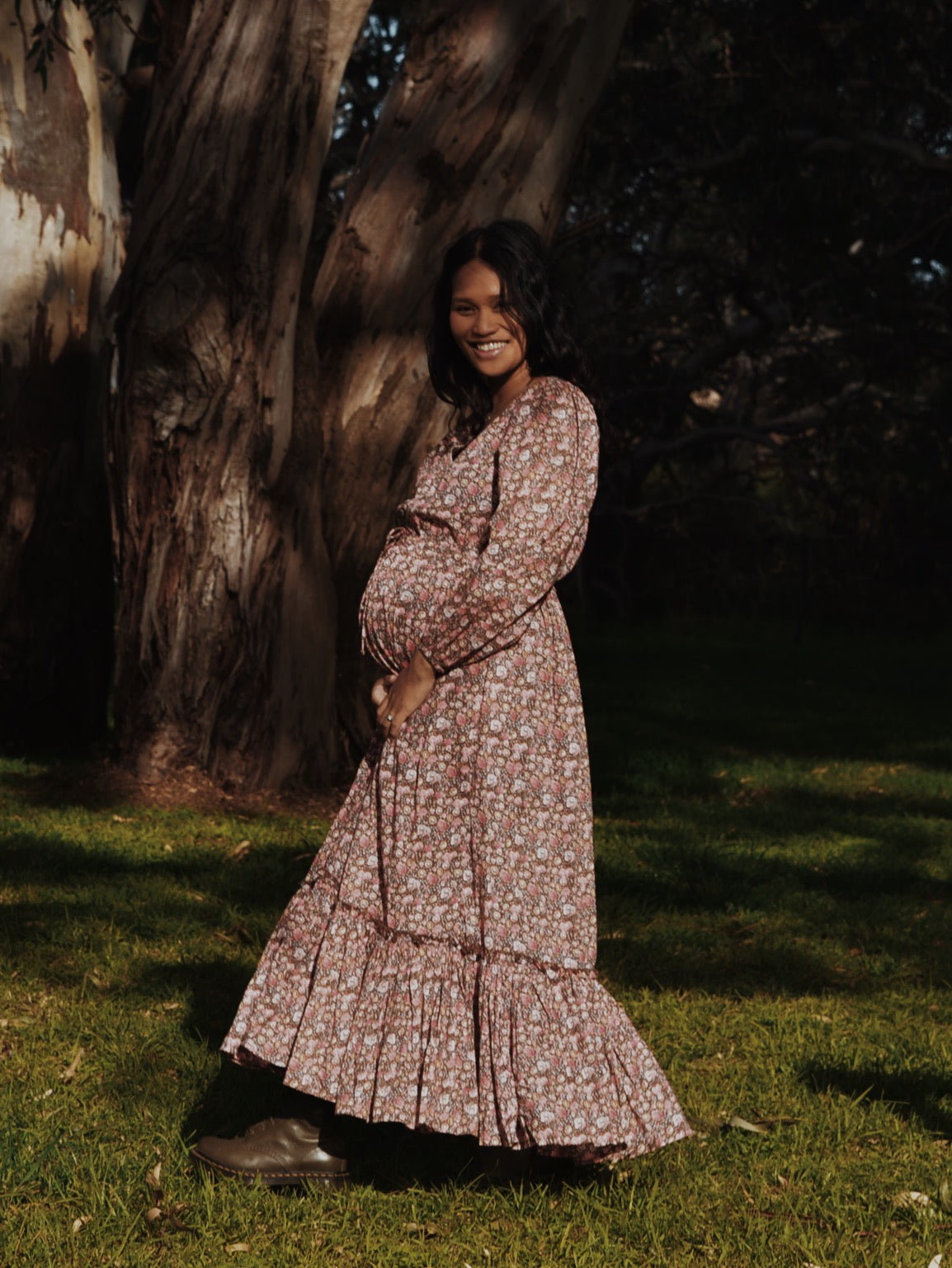 SMALL RESTOCK - MAÈLI MIDI DRESS BROWN FLORAL
