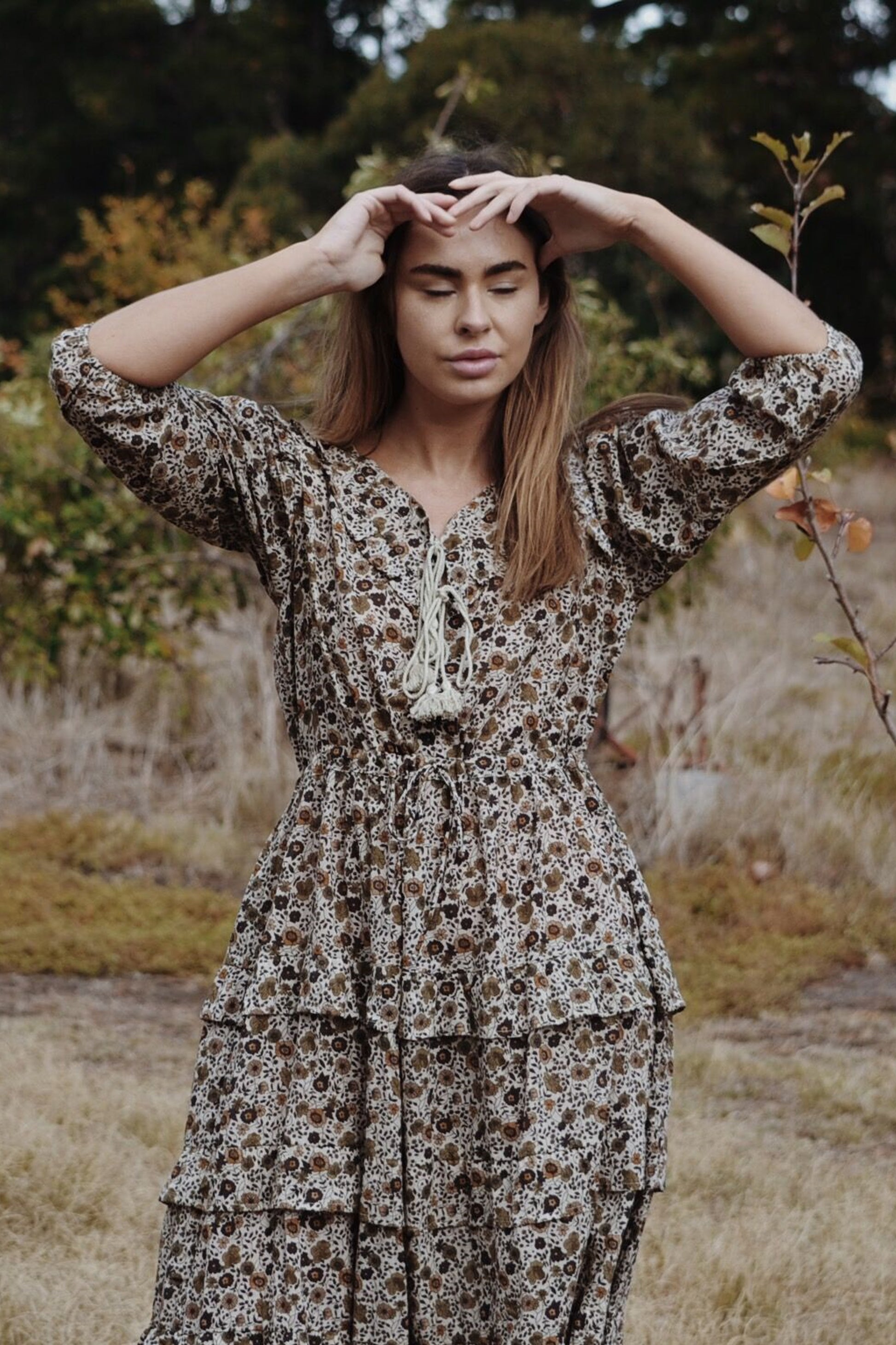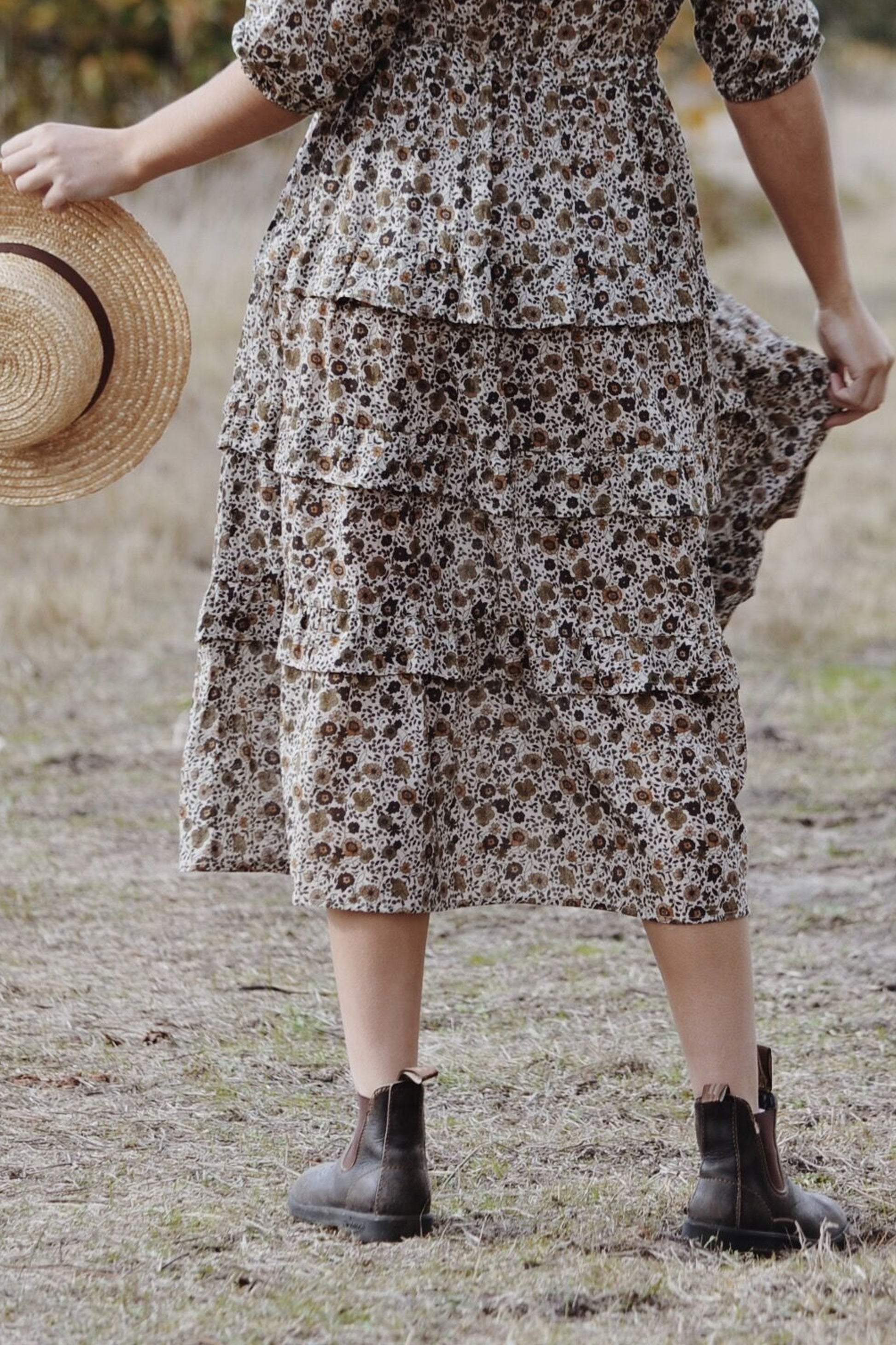 THEA ALMOND BROWN FLORAL DRESS
